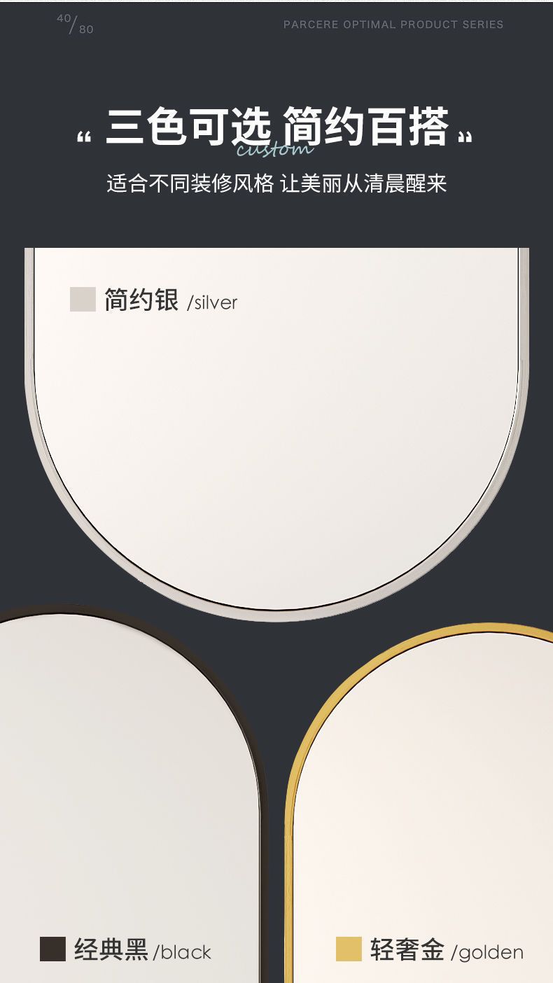 Golden 30cm with light [LED three-color dimming adjustable angle HD silver mirror safety