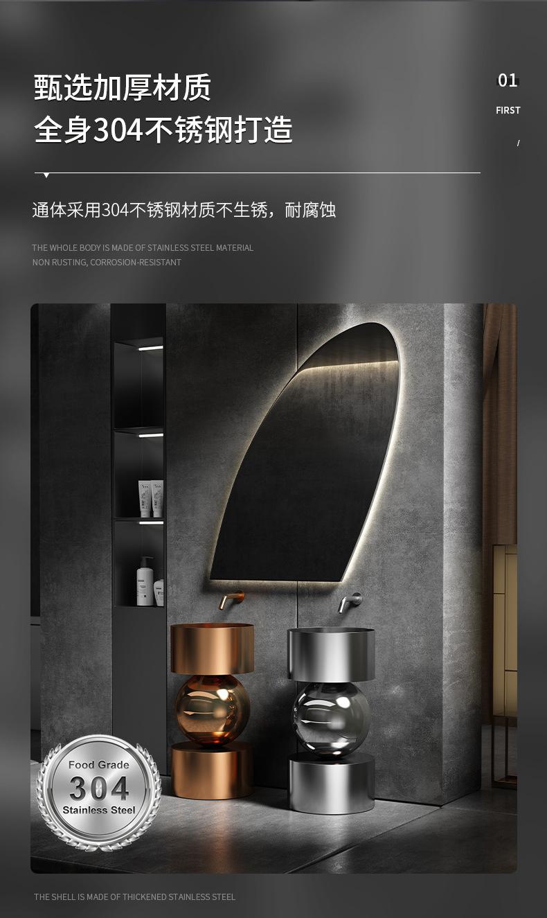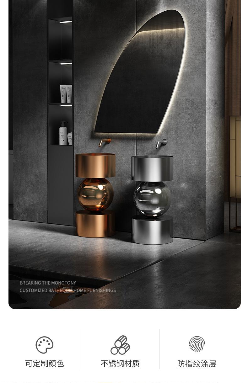 Lavabo de columna de acero inoxidable original Haoyi Steel, lavabo de baño integrado en el suelo, lavabo de columna creativo