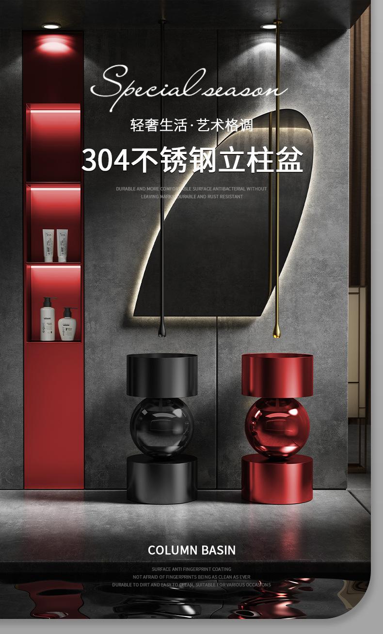 black column basin, red column basin, Golden Column Basin, Gun gray column basin, Rose gold column basin