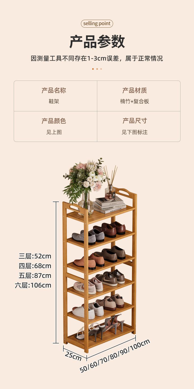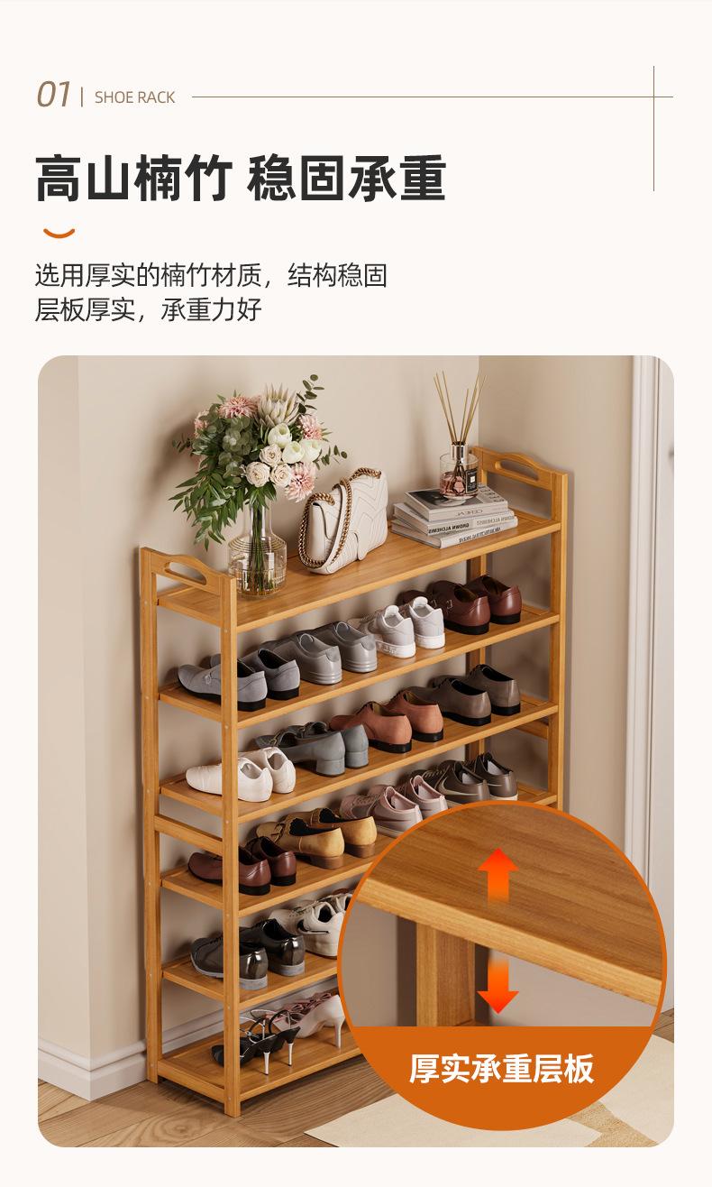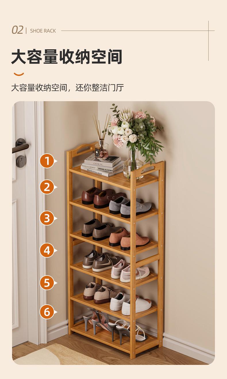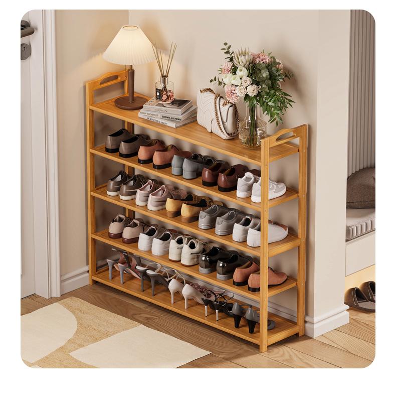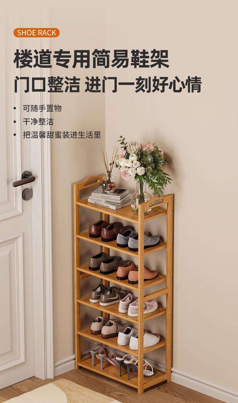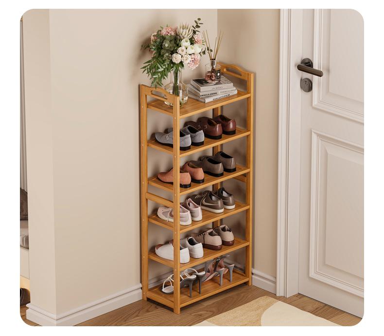 Zapatero de bambú sencillo para el hogar, zapatero de suelo multicapa que ahorra espacio, zapatero pequeño económico para dormitorio