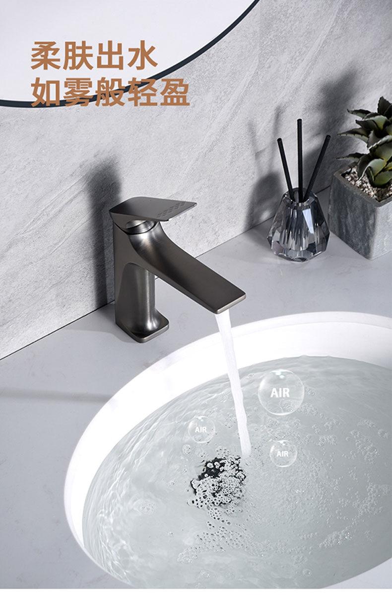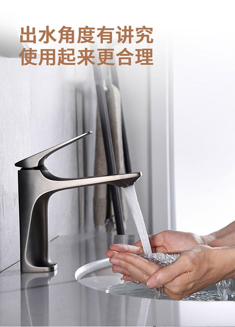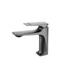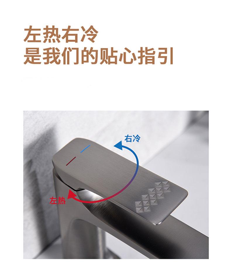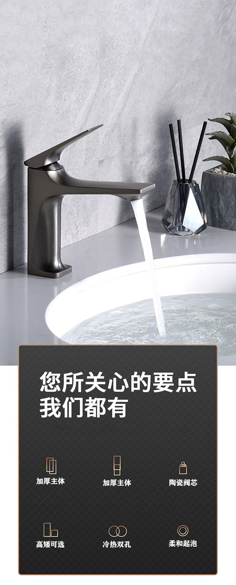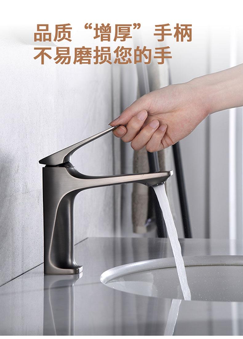 Grifo de lavabo de baño de aleación de zinc, color gris pistola, con panel de control doble, para agua caliente y fría.