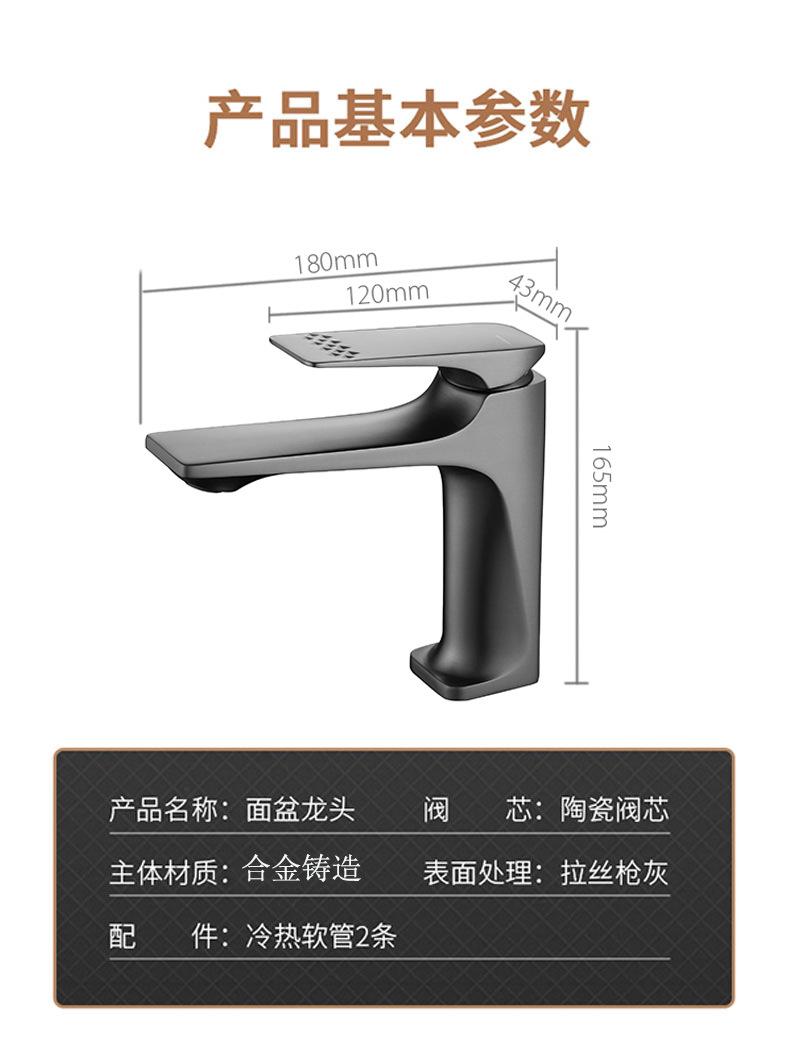 Gun gray basin faucet (with 60cm tube), Gun raised gray basin faucet (with 60cm tube)