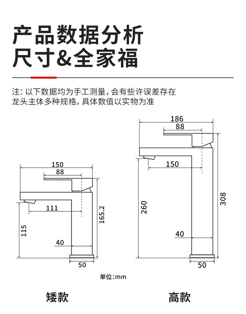 Heightened square basin faucet