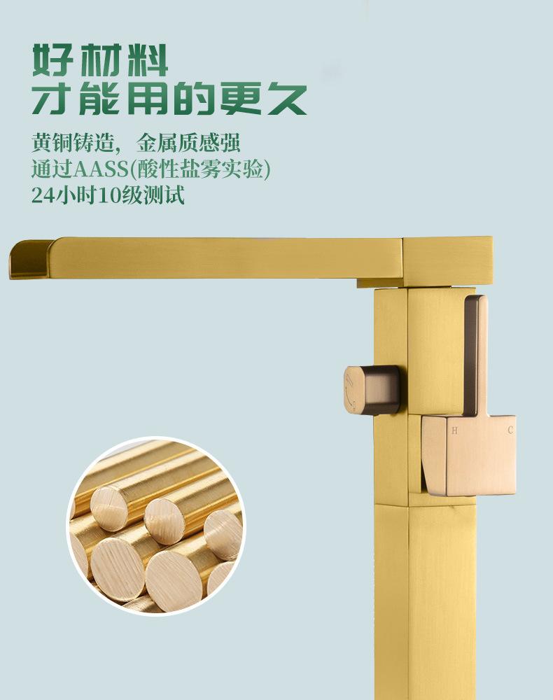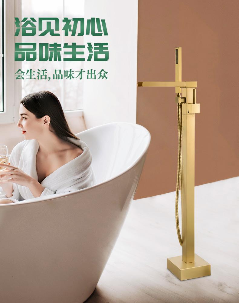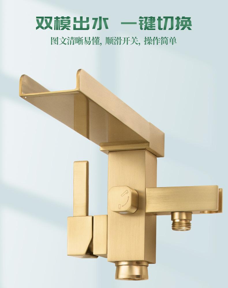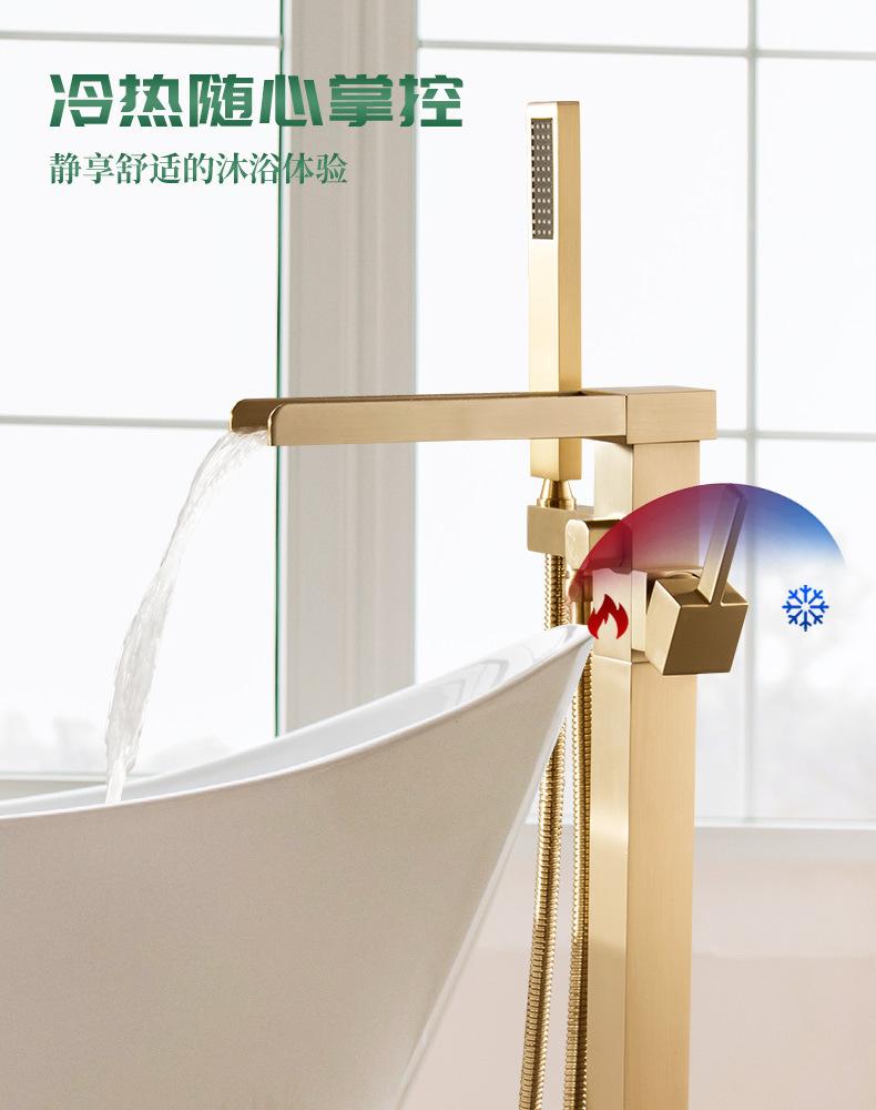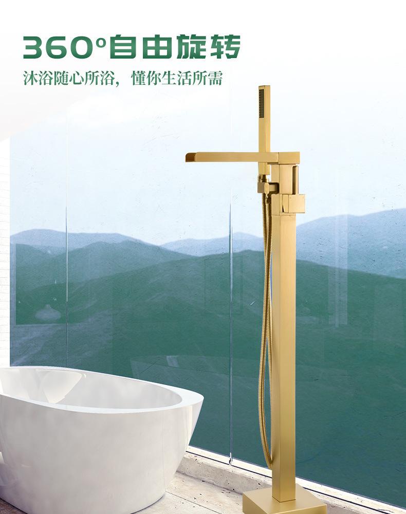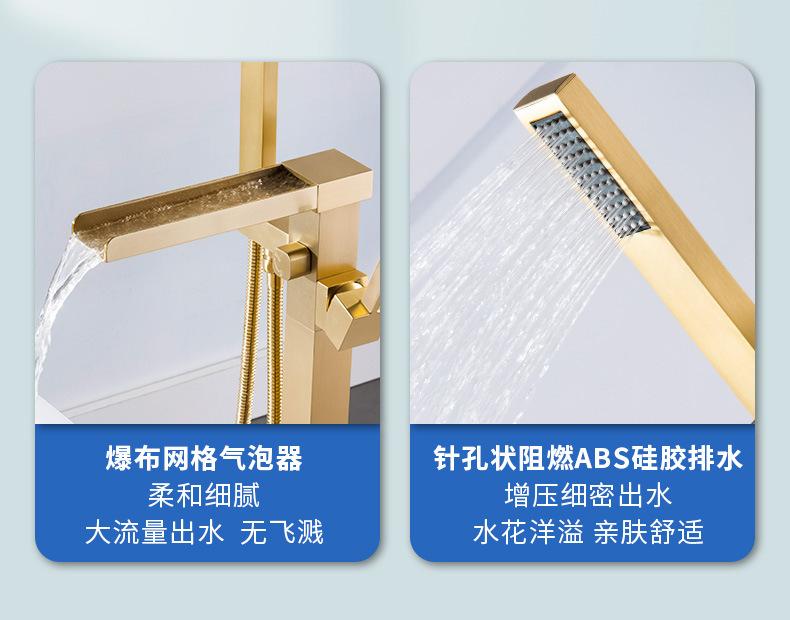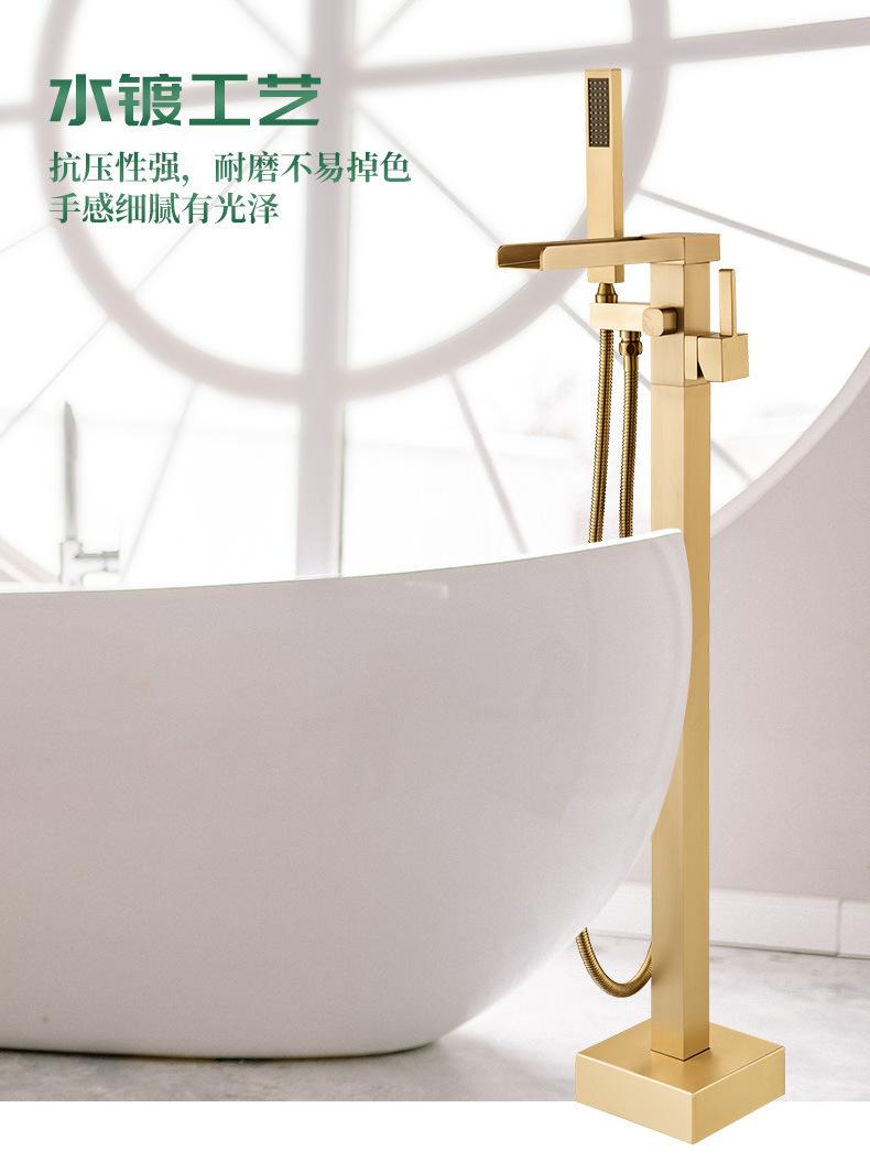 Bañera de pie transfronteriza de cobre, grifo dorado, ducha empotrada, ducha de agua caliente y fría, grifo vertical de cascada.