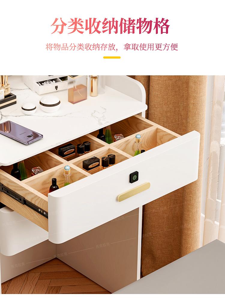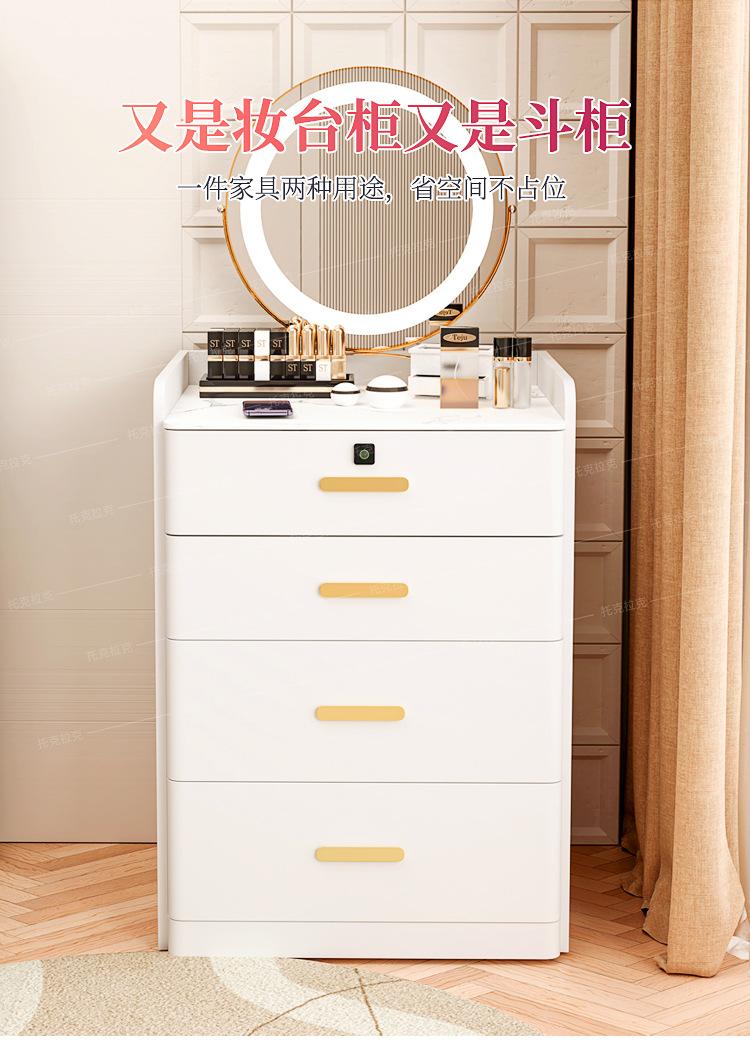 Tocador inteligente departamento pequeño tablero de roca madera maciza lujo ligero mesa de noche dormitorio con contraseña altavoz cerradura de huella dactilar gabinete de cosméticos