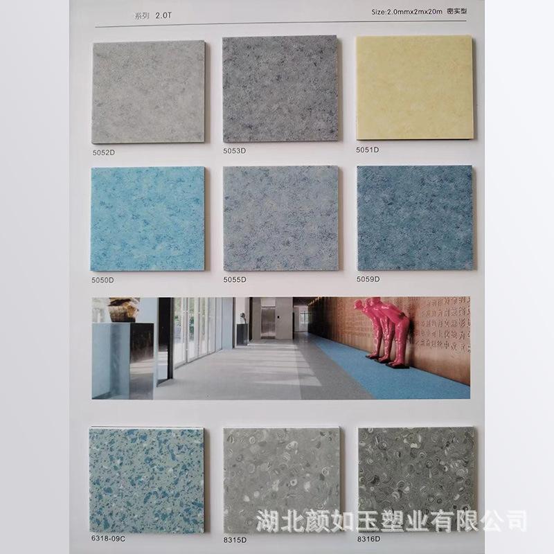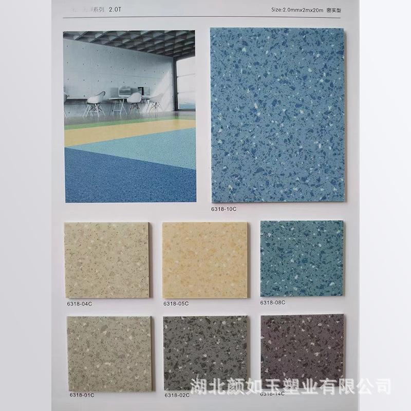 Piso de plástico de 2,0 mm, cuero sólido, piso de PVC de plástico completo, fábrica, hospital, escuela, jardín de infantes, interior, pegamento especial