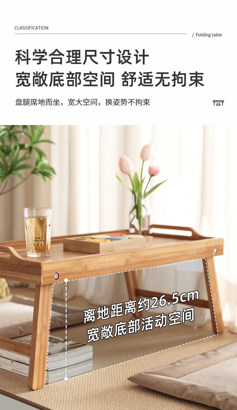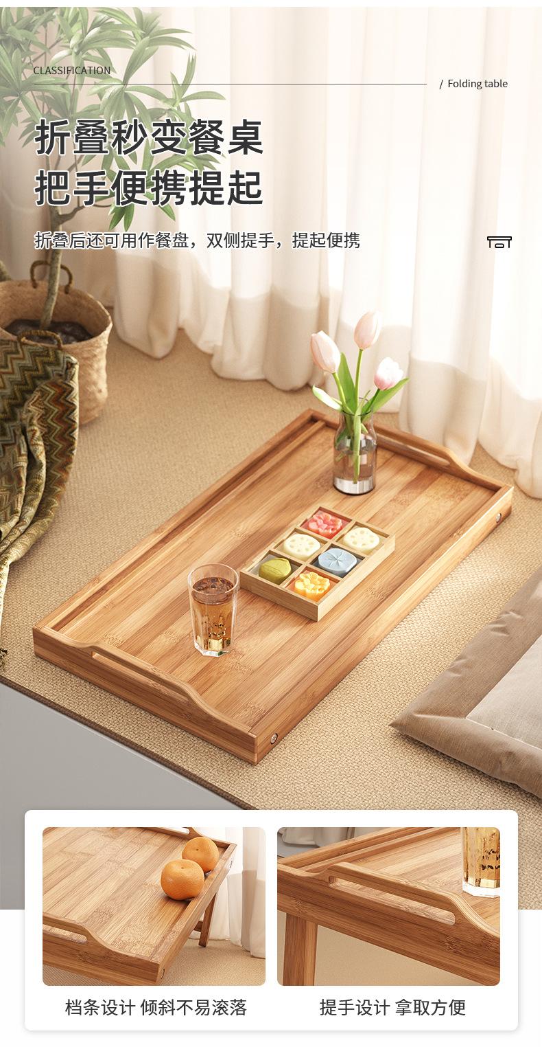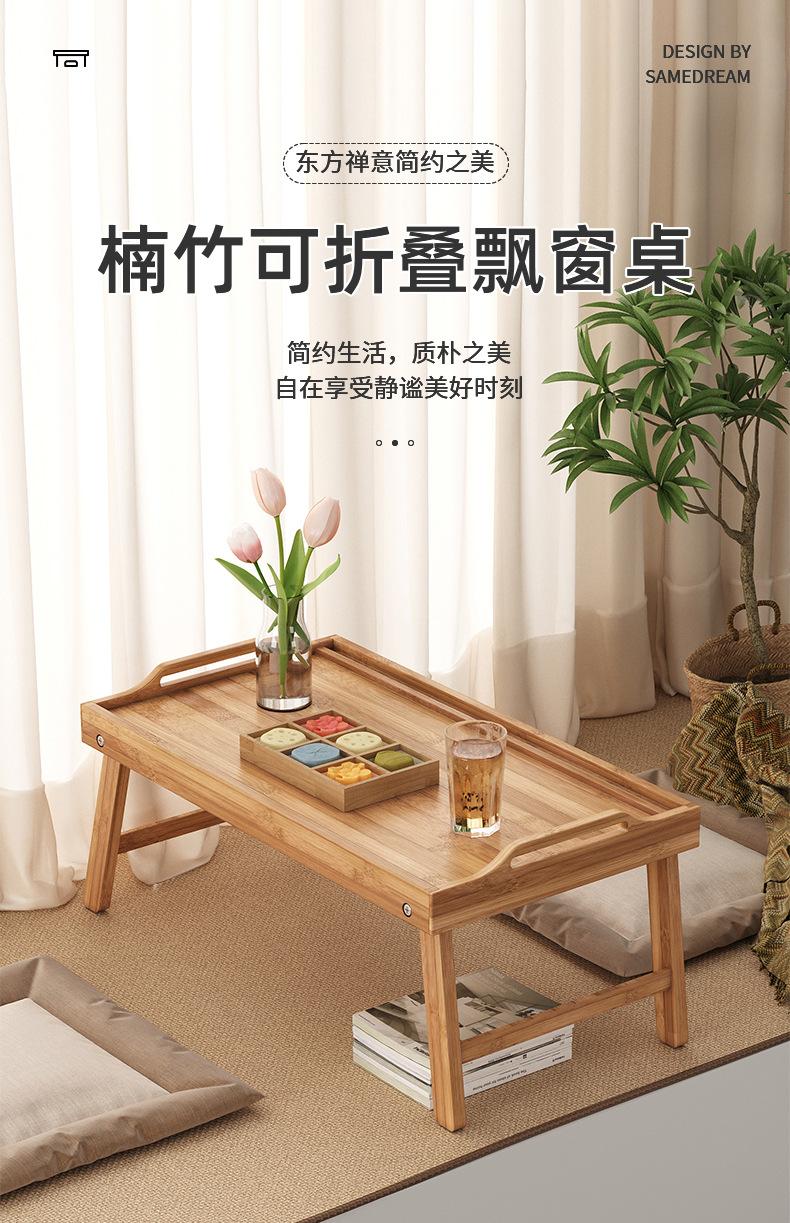 Mesa de Té Plegable Pequeña para Ventanal, Tatami de Dormitorio, Balcón, Mesa de Té de Bambú Ligera