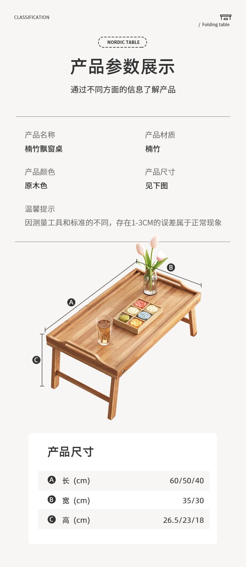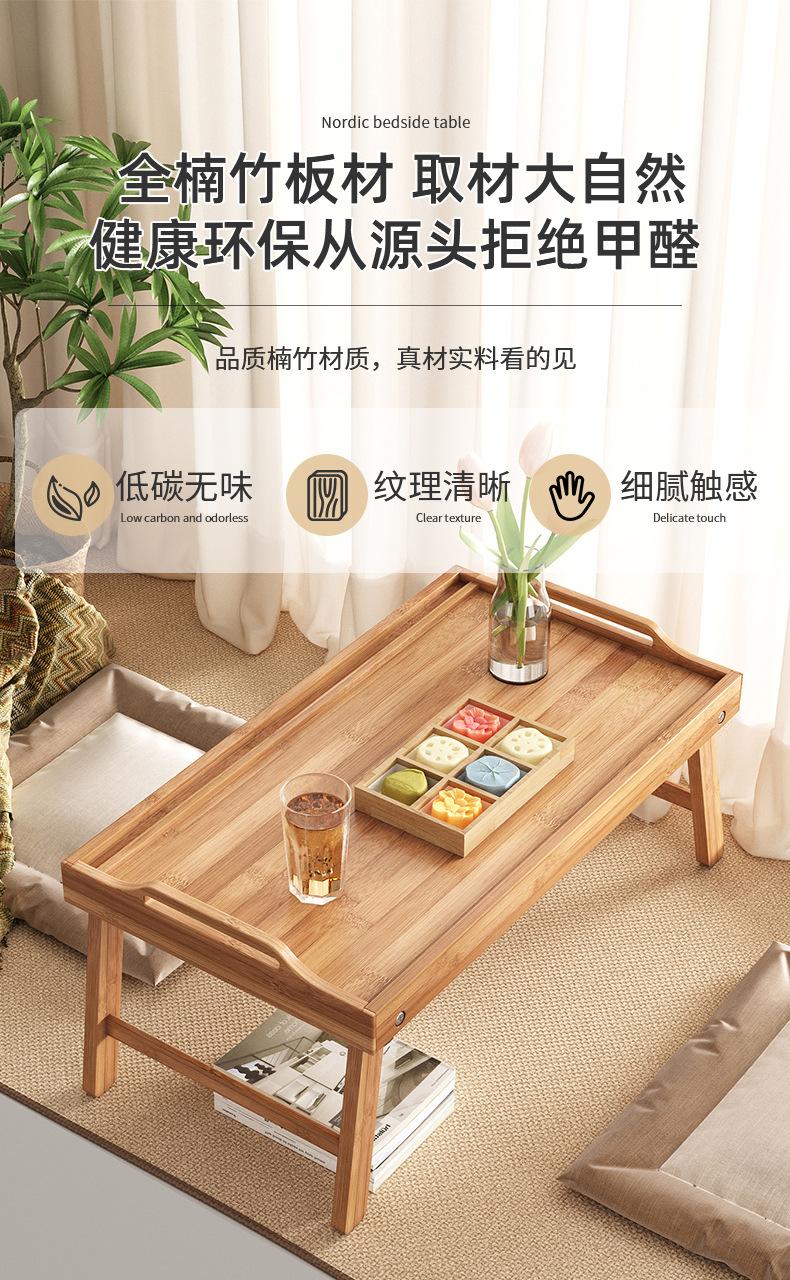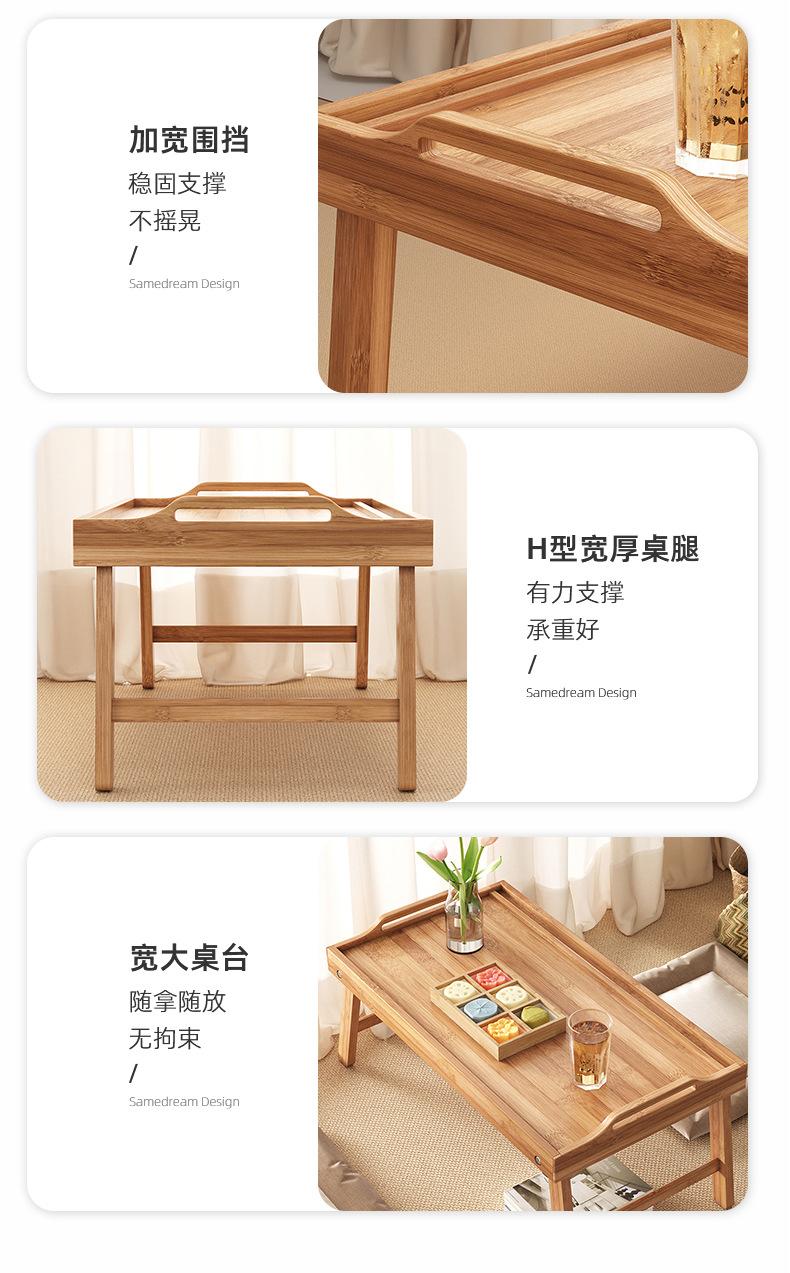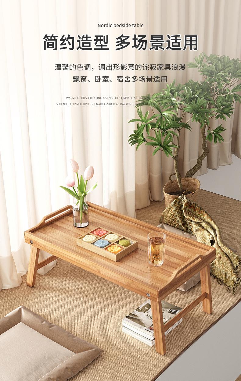 Mesa de Té Plegable Pequeña para Ventanal, Tatami de Dormitorio, Balcón, Mesa de Té de Bambú Ligera
