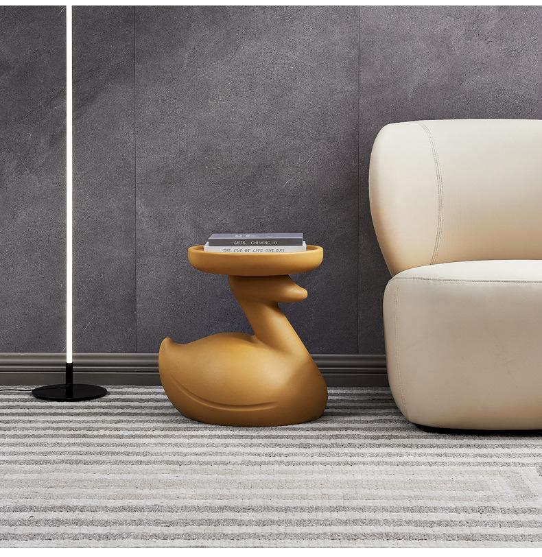 Mesa de centro nórdica con diseño de patito, para apartamentos pequeños, mesa auxiliar artística para sofá, mesa de esquina decorativa creativa con forma de cisne.