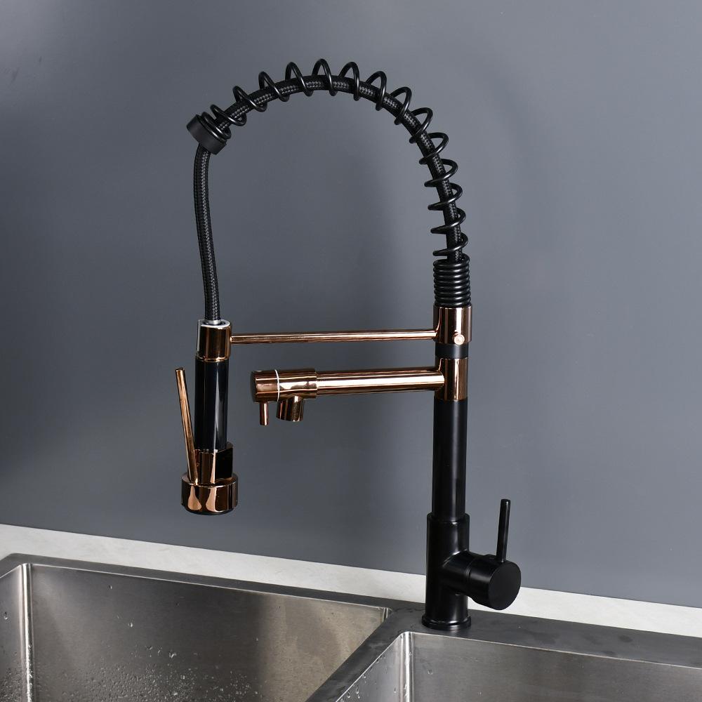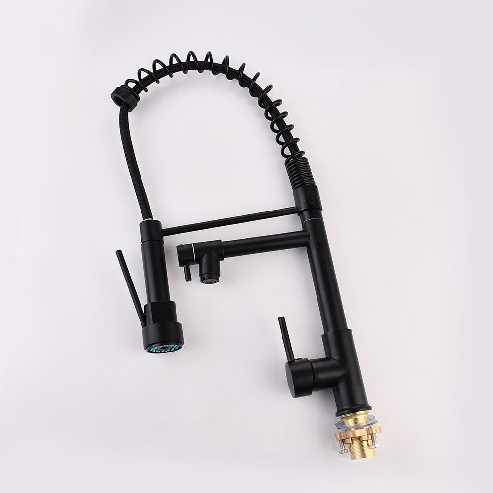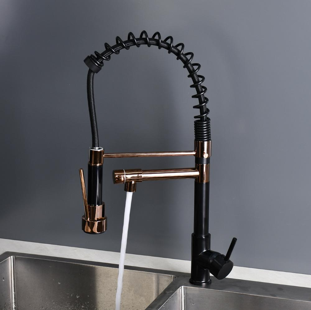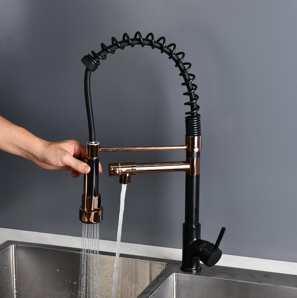 Grifo extraíble para lavabo de verduras transfronterizo, doble salida, giratorio, multifunción, para cocina, agua caliente y fría, grifo de resorte negro