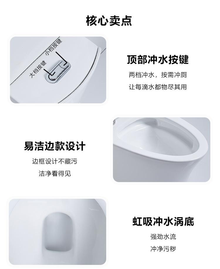 Inodoro Silencioso para Hotel Hogar Baño Descarga Inodoro Diámetro Grande Sifón Super Deslumbrante Anti-Olor y Anti-Salpicaduras Inodoro Cerámico Estándar