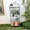 Estante de flores de hierro multicapa para balcón vintage, para patio, floristería, maceta carnosa, estante de almacenamiento plegable de pie