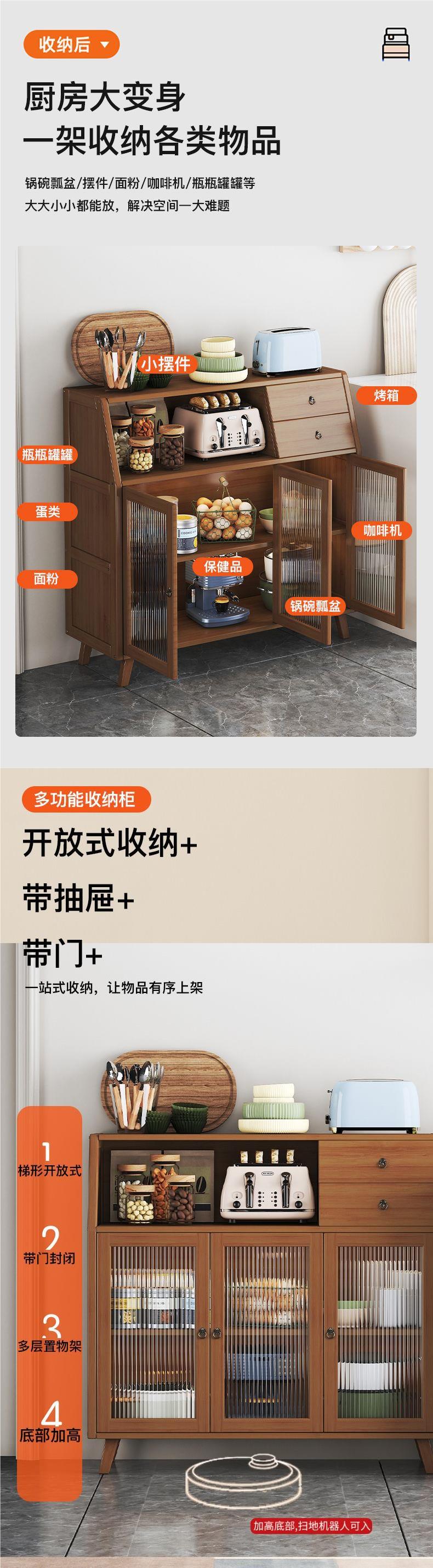Aparador, mueble de cocina, armario de almacenamiento, armario de almacenamiento de alimentos para el hogar, madera maciza, color sala de estar, armario de té, armario