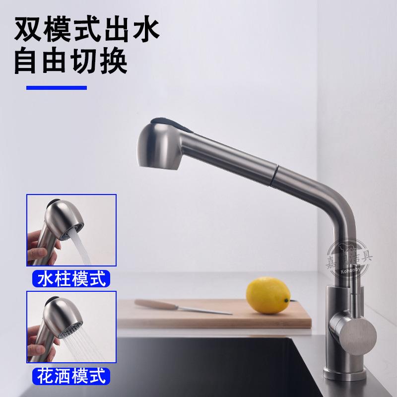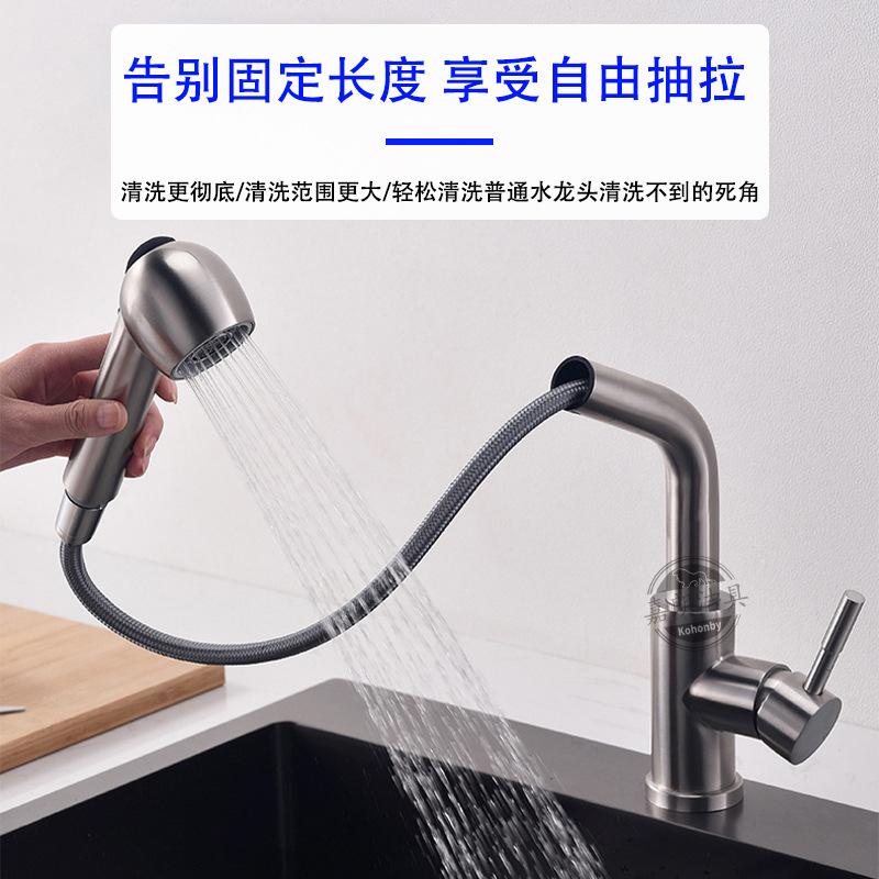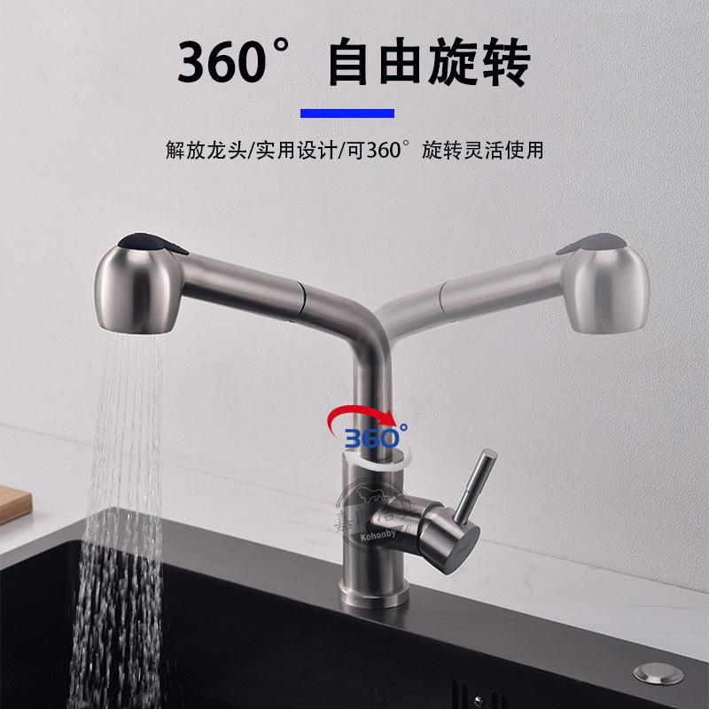 Grifo extraíble para lavabo de cocina, universal, para agua caliente y fría, giratorio de acero inoxidable
