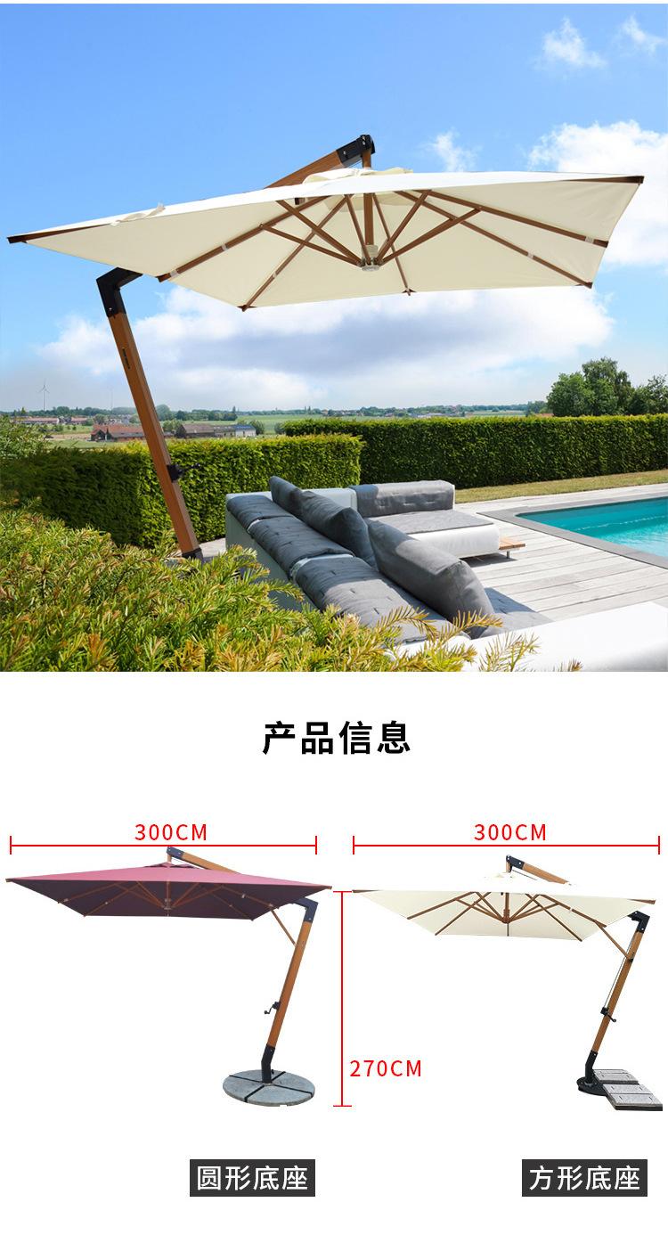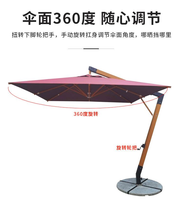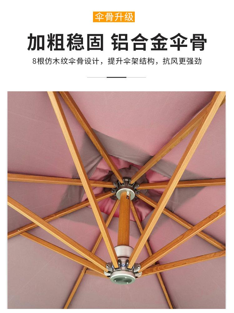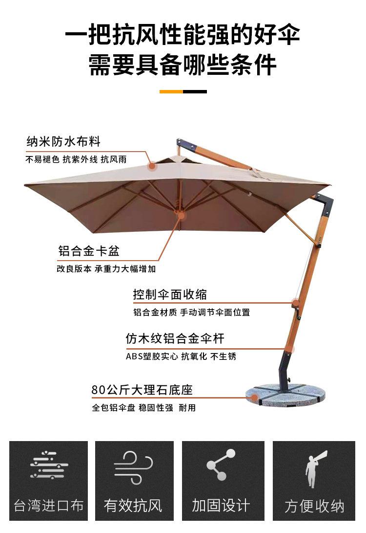 Imitation wood grain large aluminum umbrella-Square 3*3 m (with 160kg round marble base)