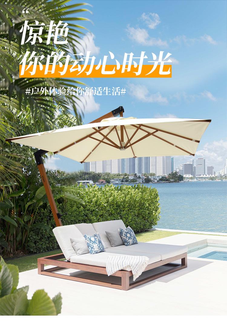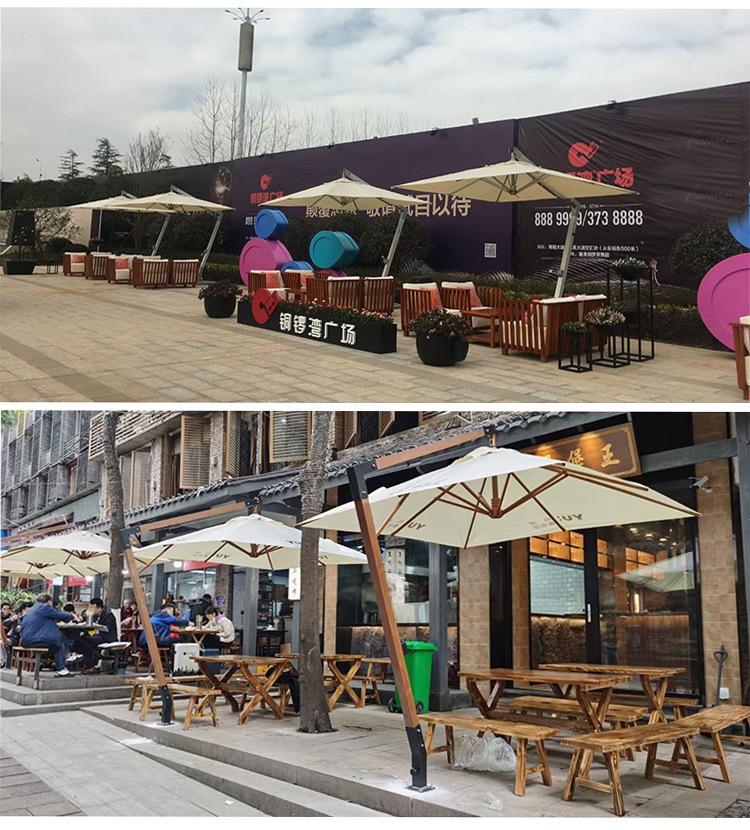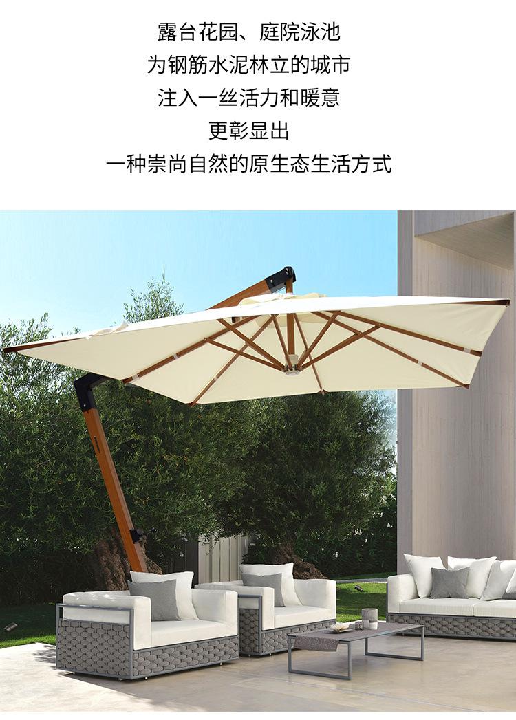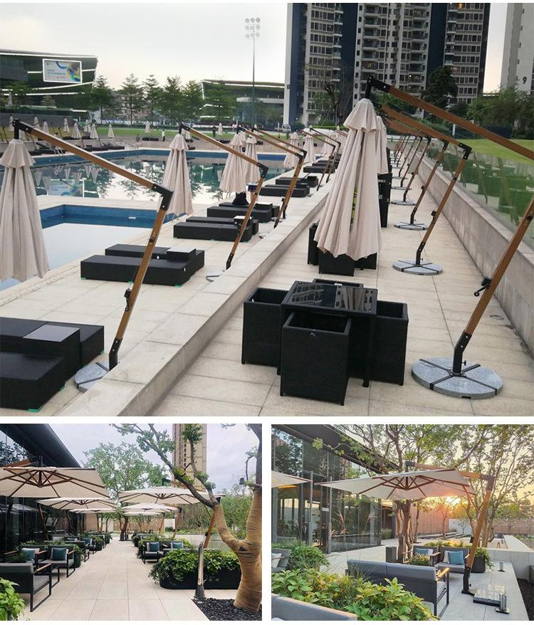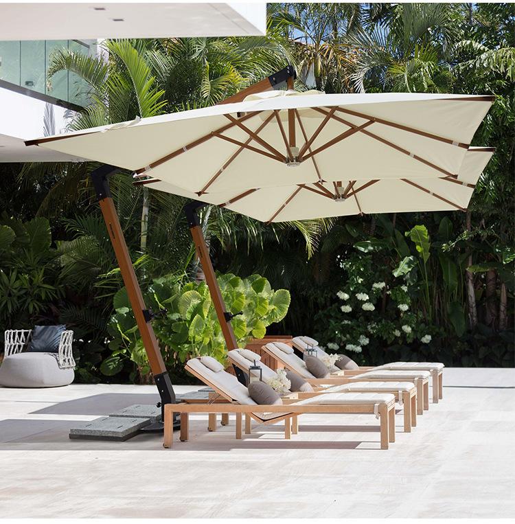 Imitation wood grain large aluminum umbrella-Square 3*3 m (with 160kg round marble base)