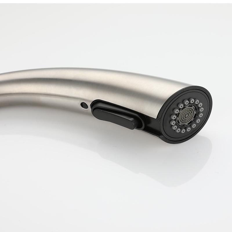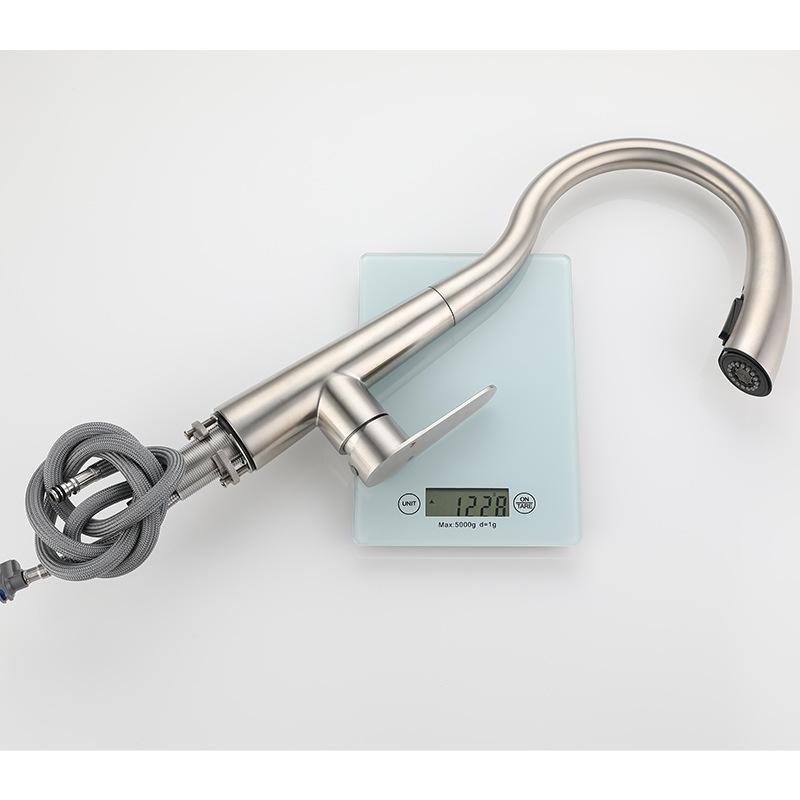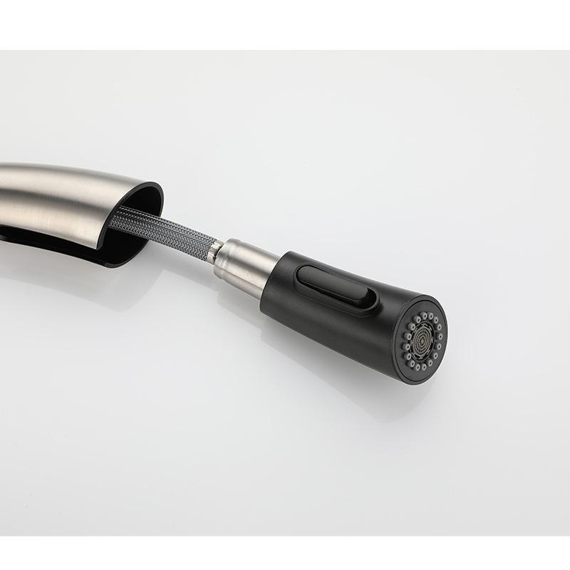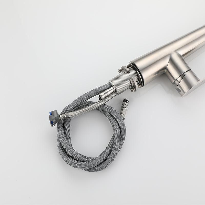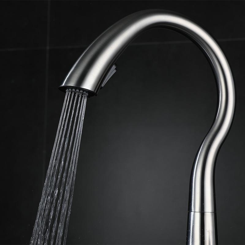 Grifo de cocina extraíble con doble salida de agua en forma de S de acero inoxidable, grifo retráctil giratorio para lavabo de verduras y agua caliente y fría.
