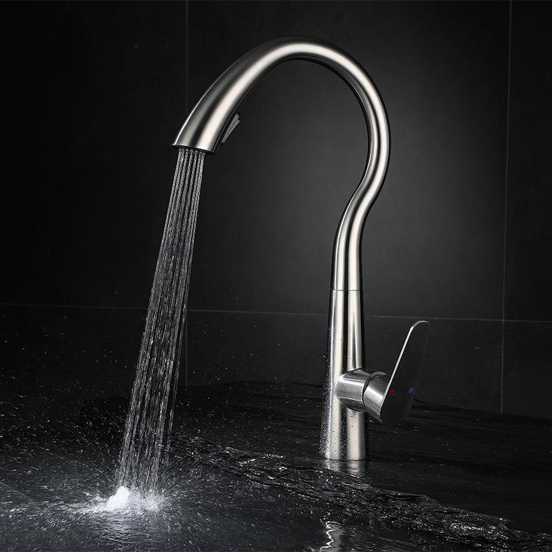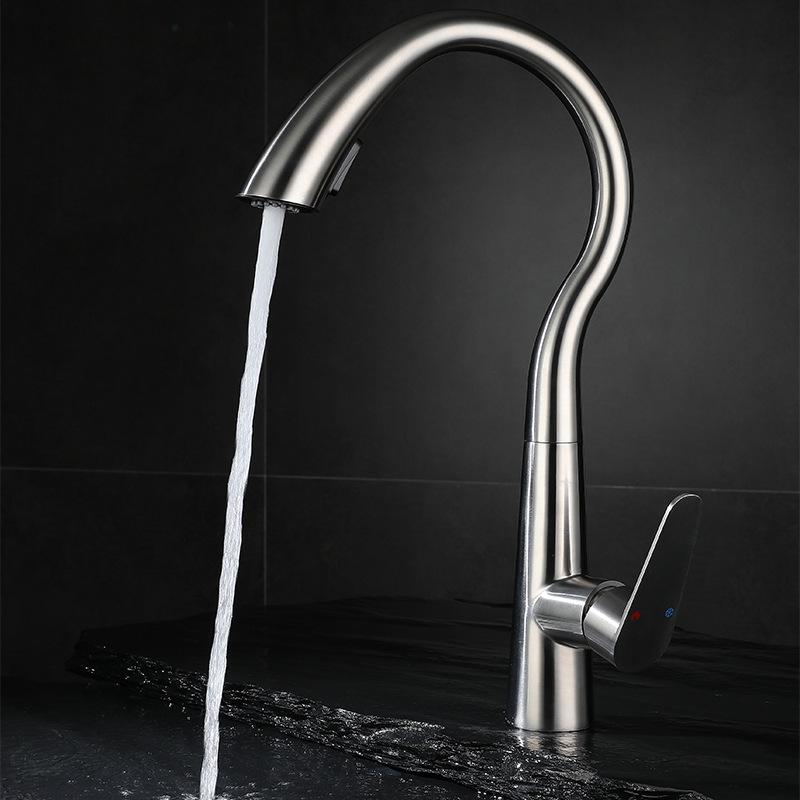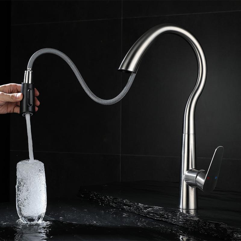 Grifo de cocina extraíble con signo de interrogación de acero inoxidable para agua fría y caliente, fregadero para verduras a prueba de salpicaduras, fregadero giratorio y retráctil