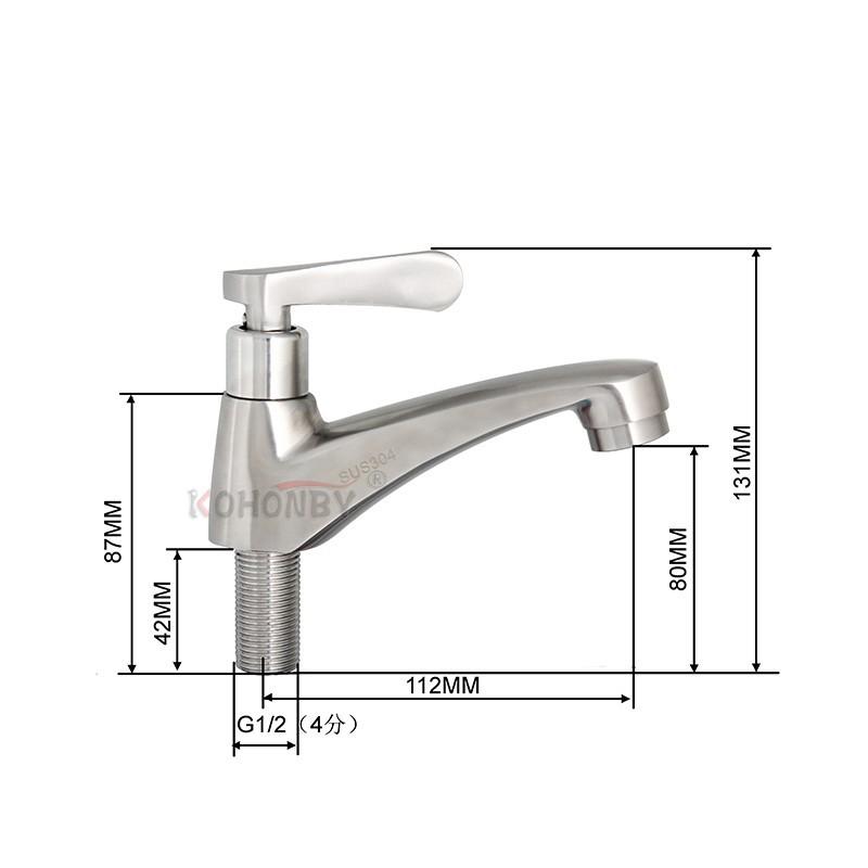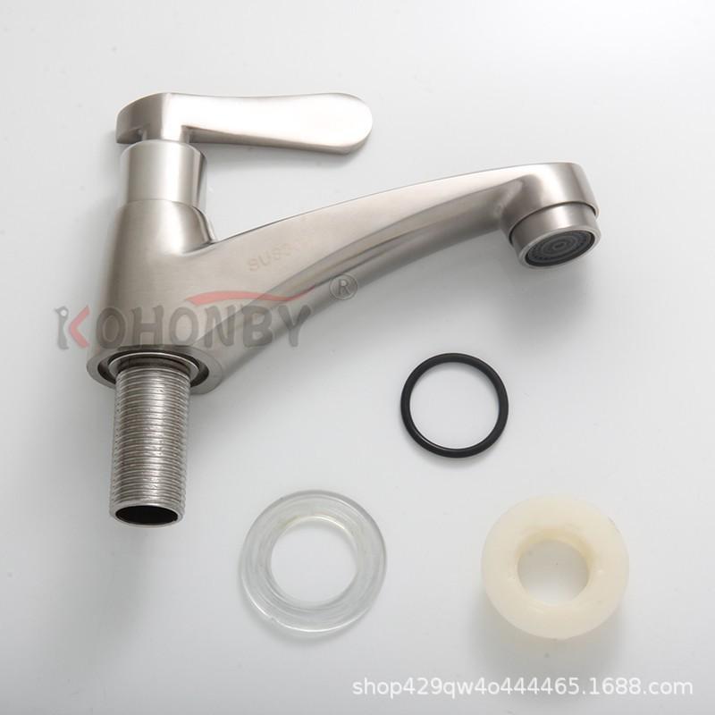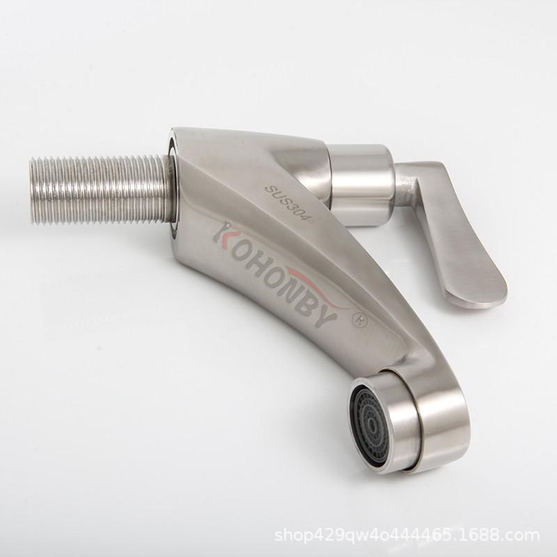 Suministro directo de fábrica 304 acero inoxidable grifo de lavabo de agua fría individual de boca curva de un solo agujero grifo de agua fría individual para lavabo vertical Perno