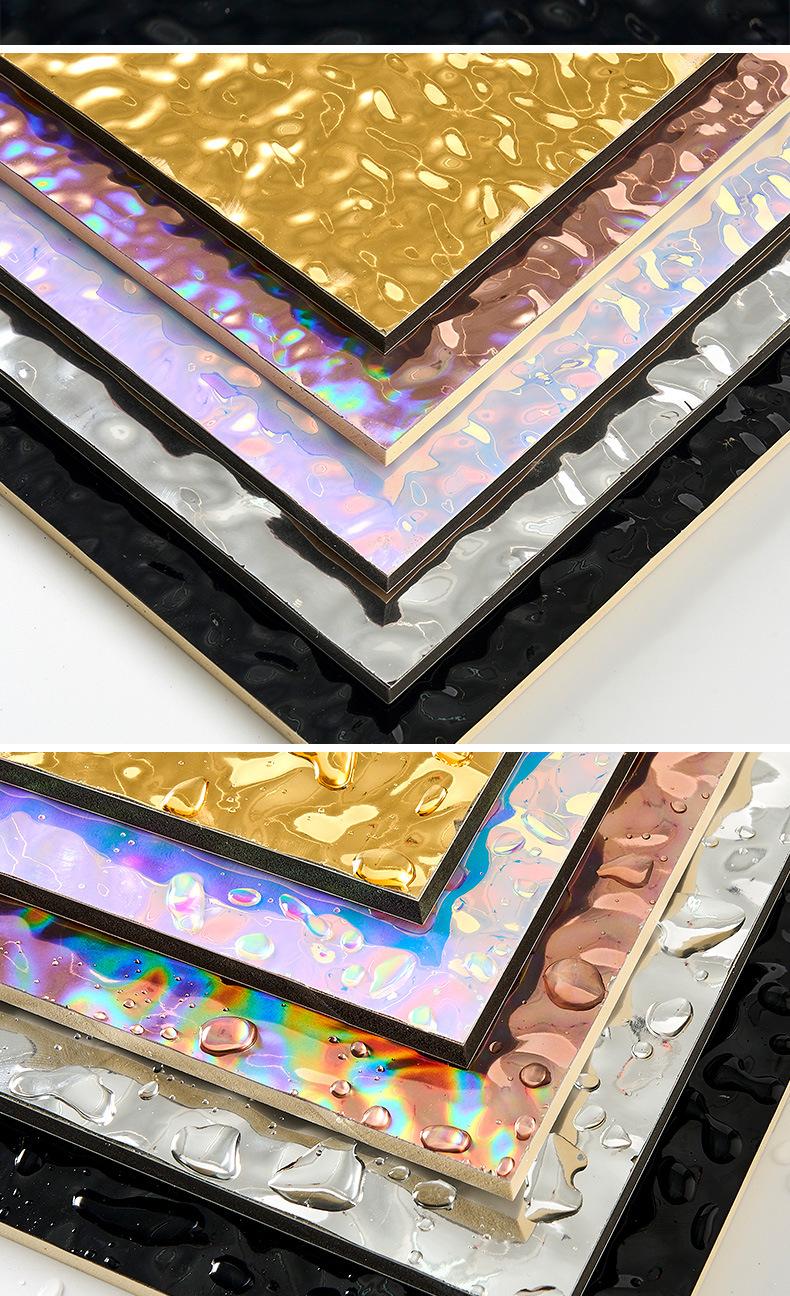Placa de metal de madera de carbón de bambú, gran panel de espejo corrugado de agua, panel decorativo de madera, panel de pared, placa decorativa, placa de cristal de carbono para techo de pared