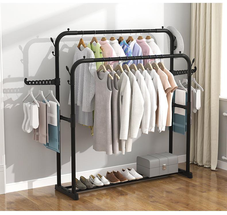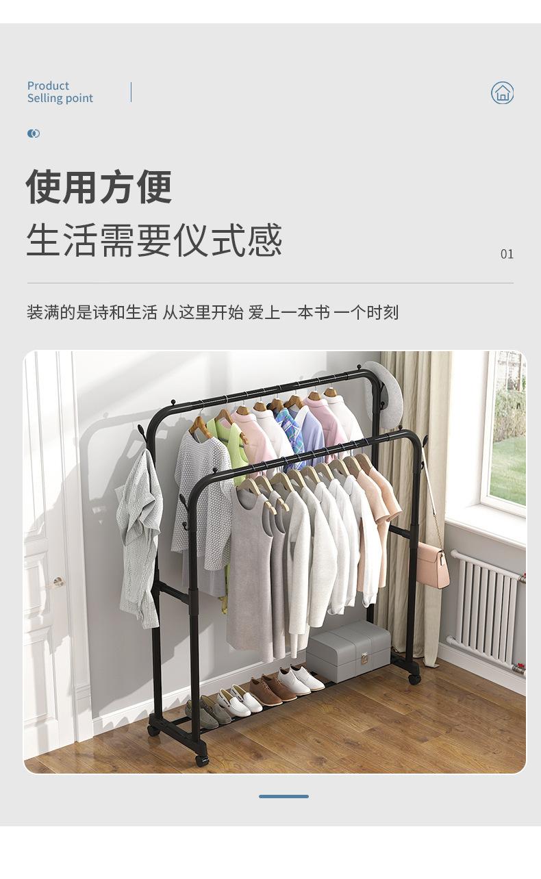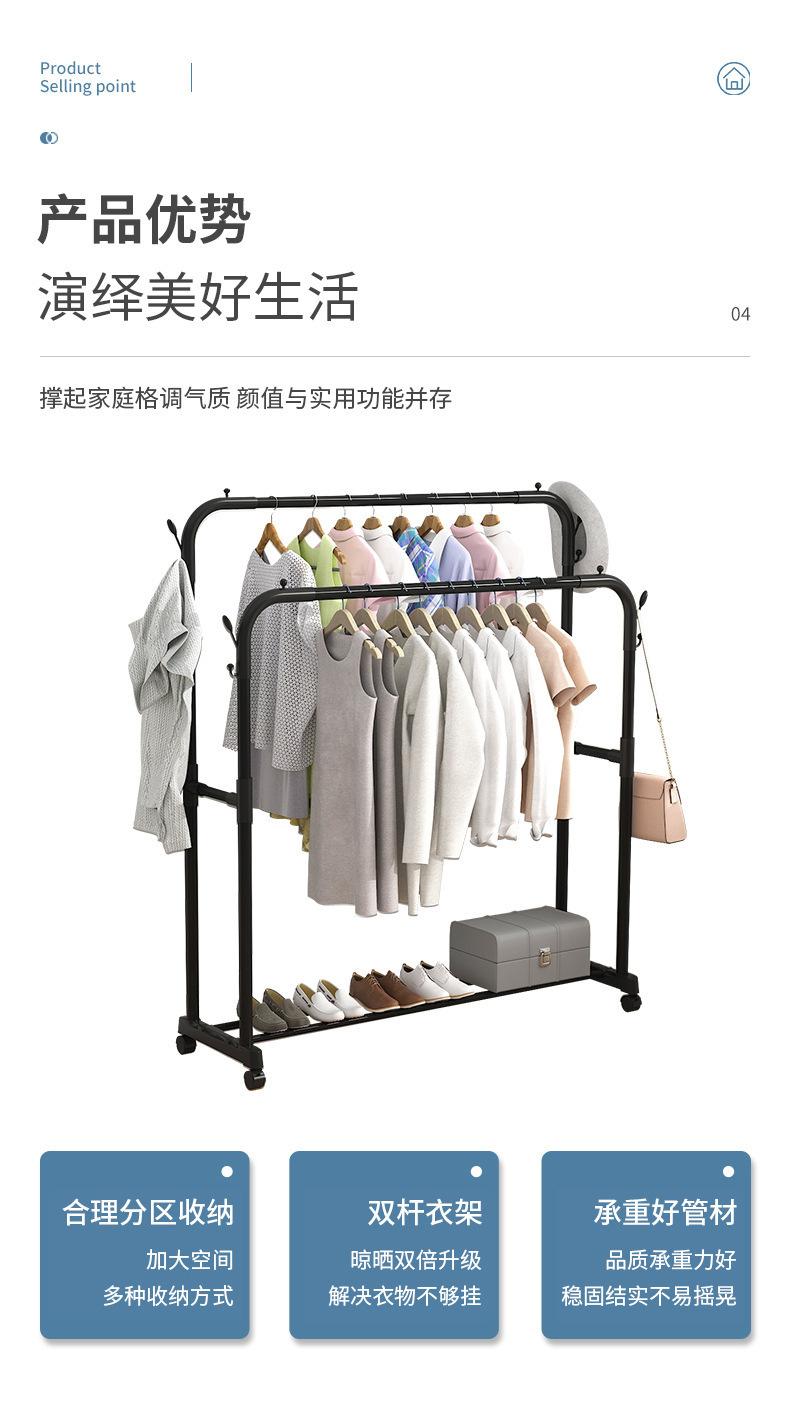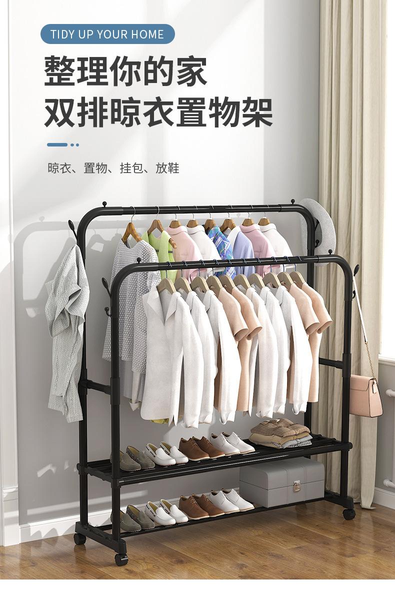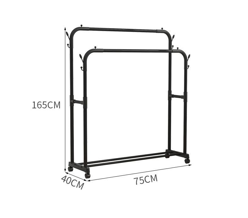 Double pole model [large capacity + wheel] high and low coat rack mobile model