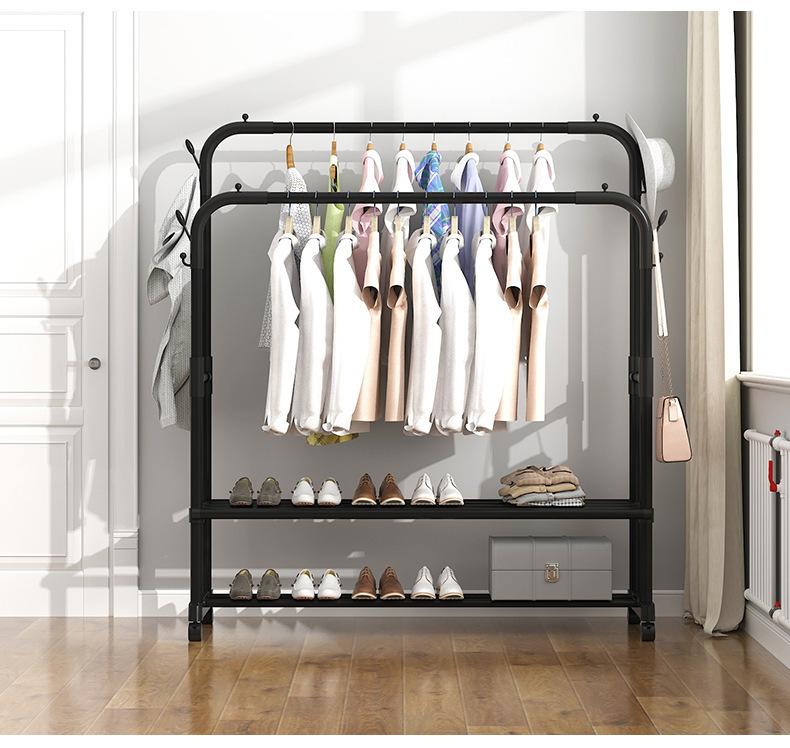 Double [large capacity] coat and hat +2-layer storage rack + wheel