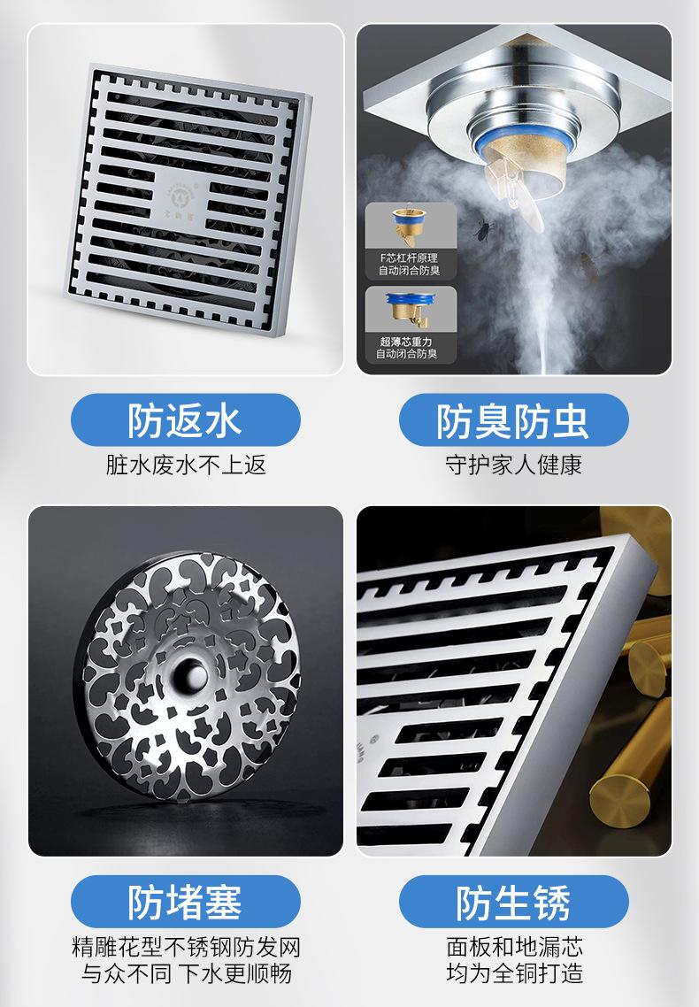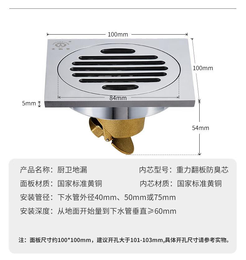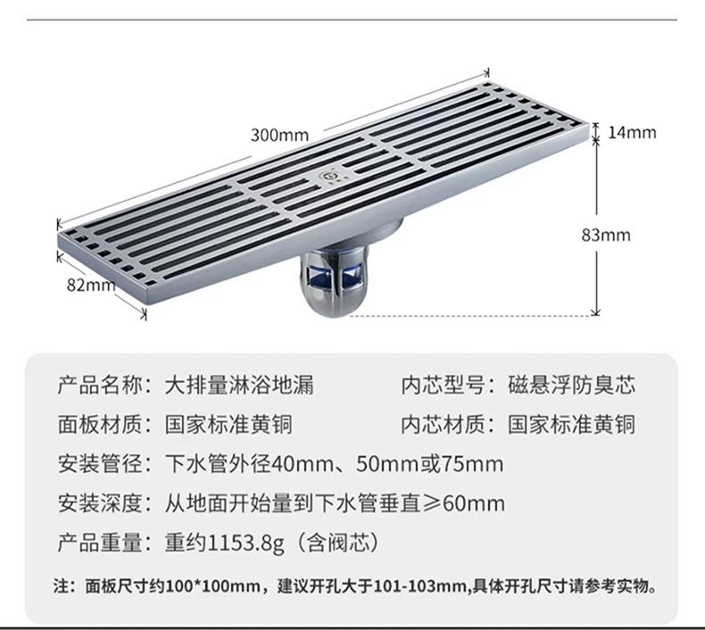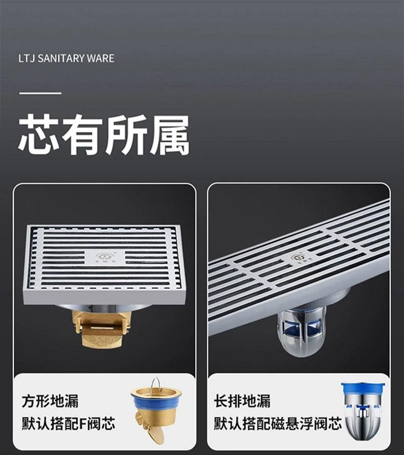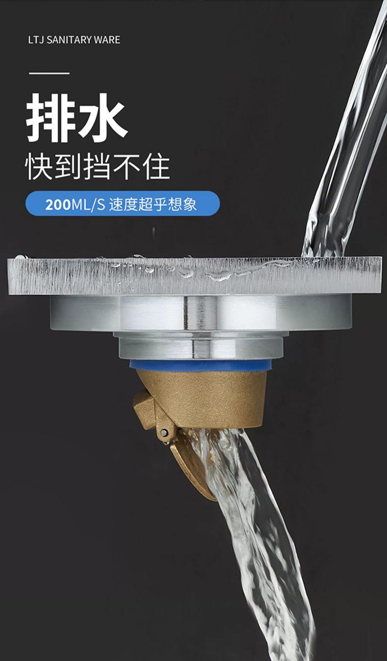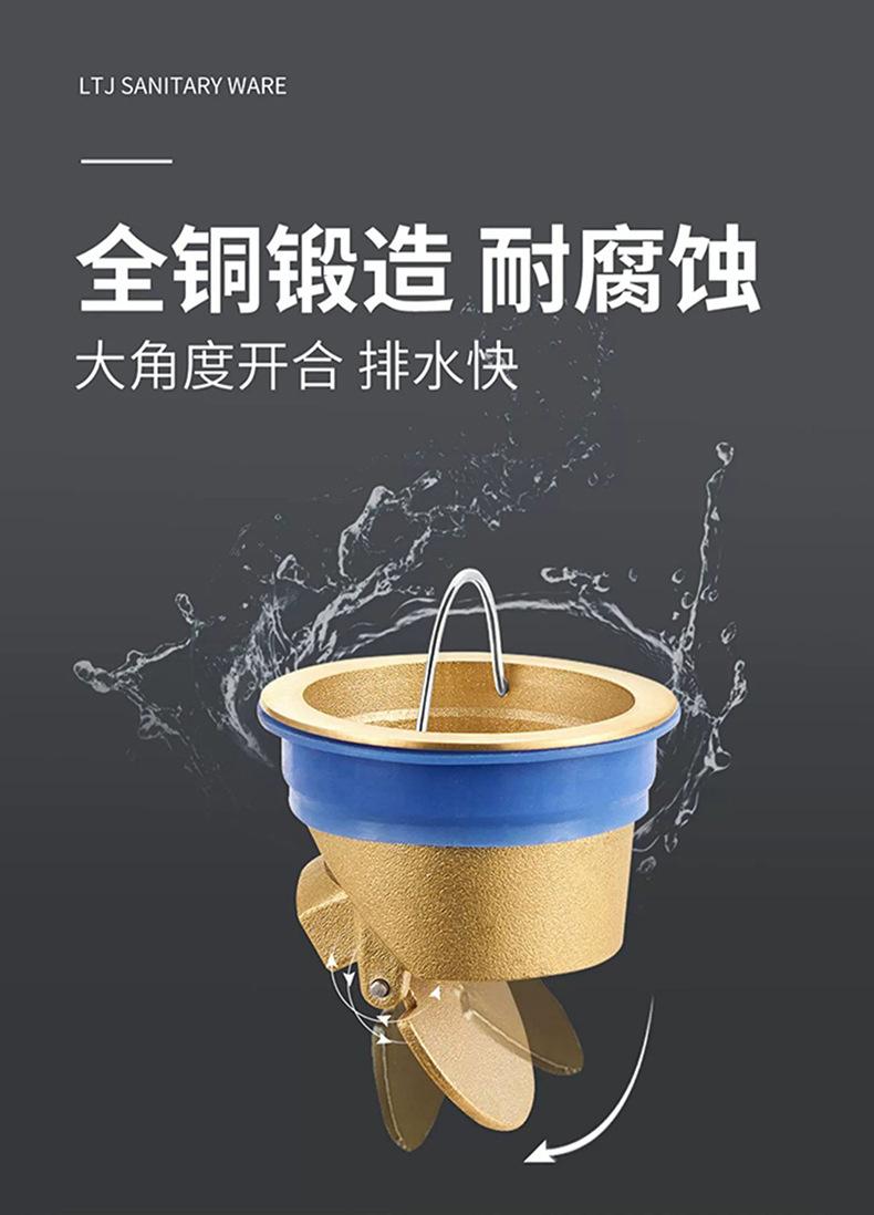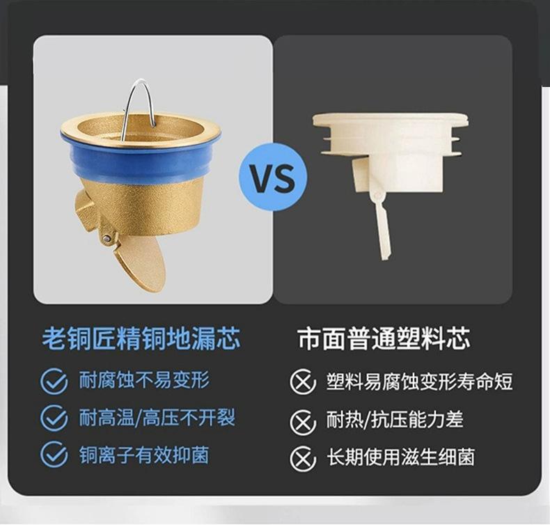 Kitchen and bathroom floor drains (210 models) come with full copper anti-odor core, Kitchen and bathroom floo...