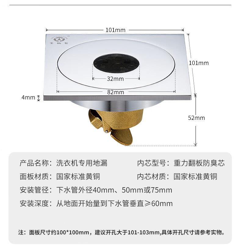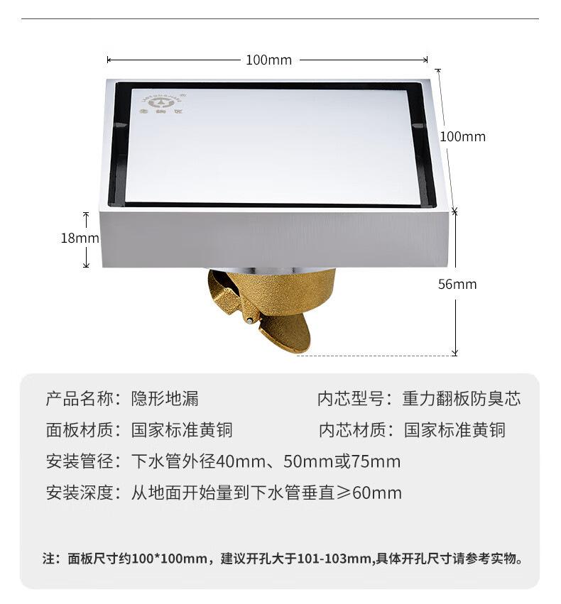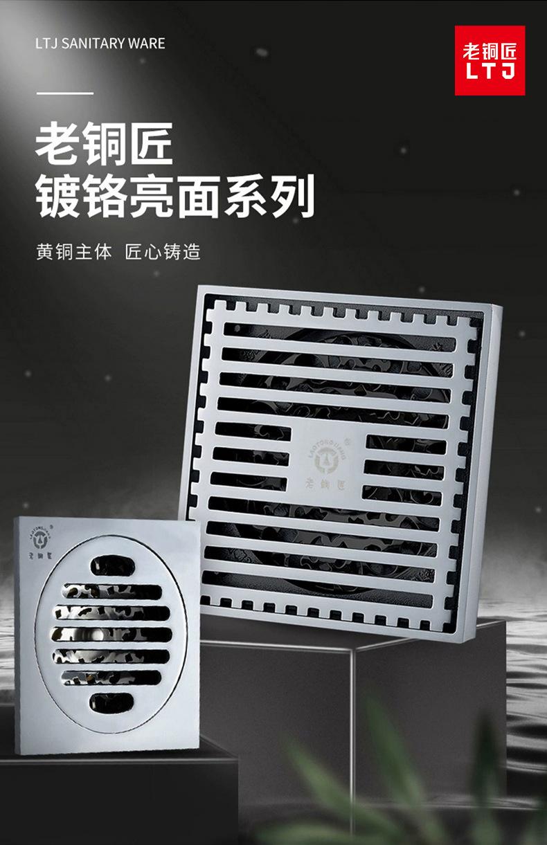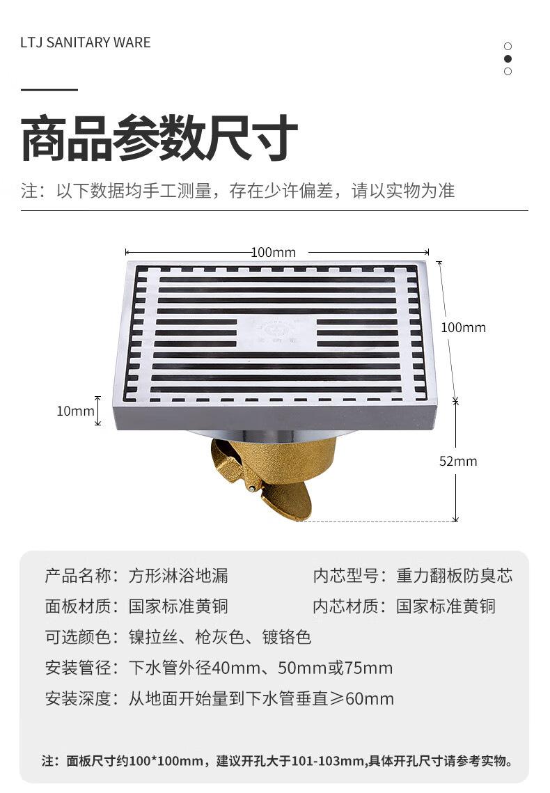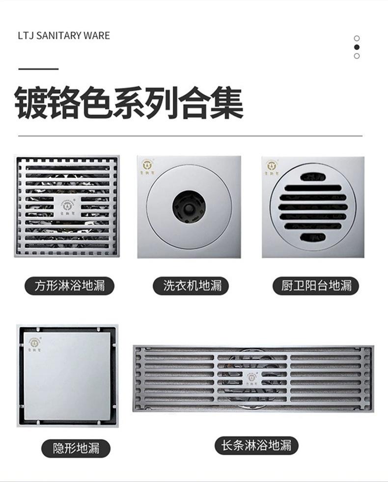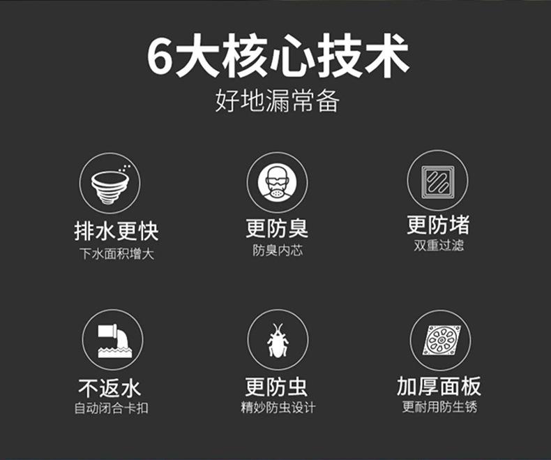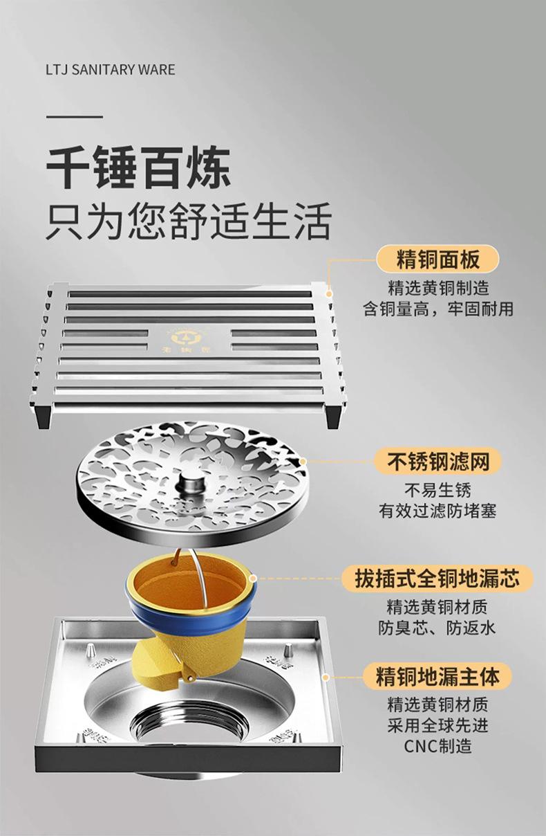 Kitchen and bathroom floor drains (210 models) come with full copper anti-odor core, Kitchen and bathroom floo...