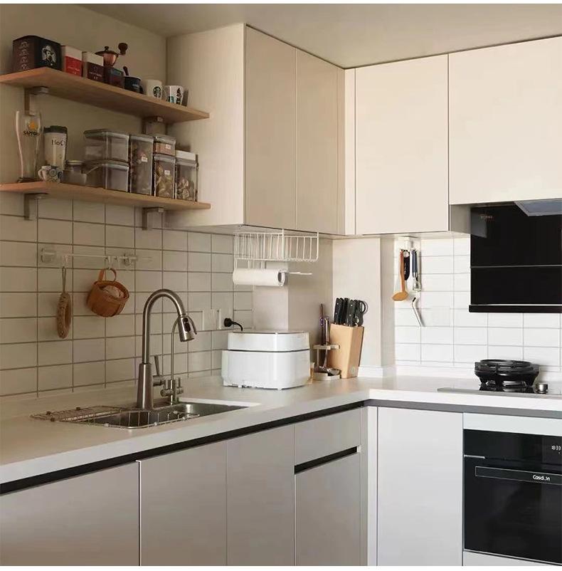 Armario de cocina personalizado de Beijing, armario de pared lateral abierto para el hogar, encimera de piedra de cuarzo, armario de almacenamiento