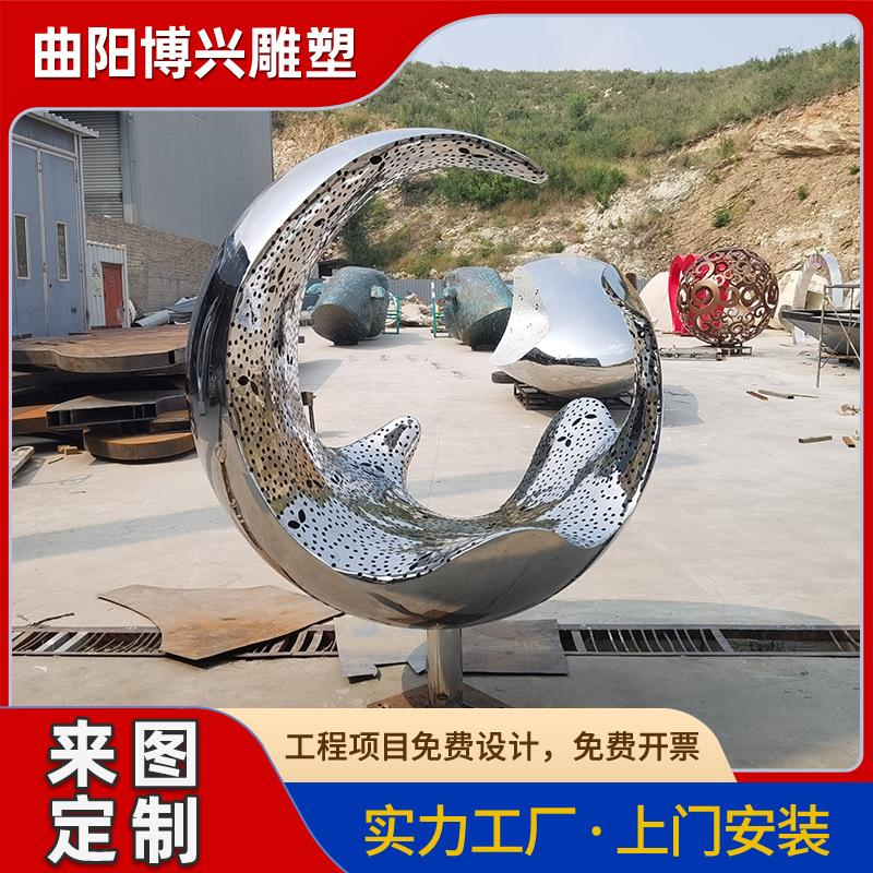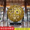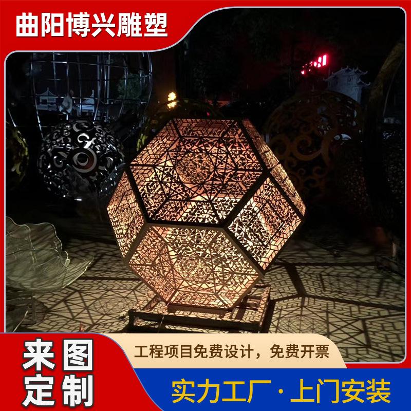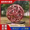 Outdoor large stainless steel square sculpture red hollow ball manufacturers make modern metal luminous ball ornaments