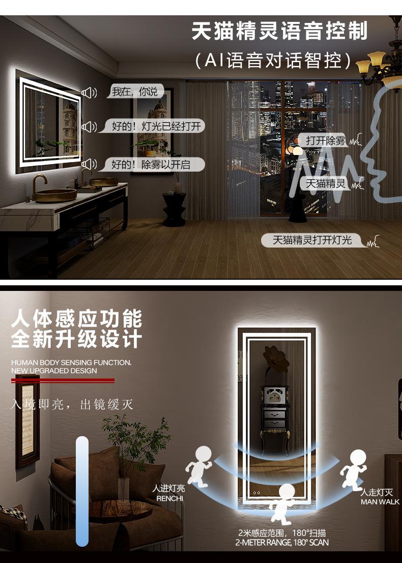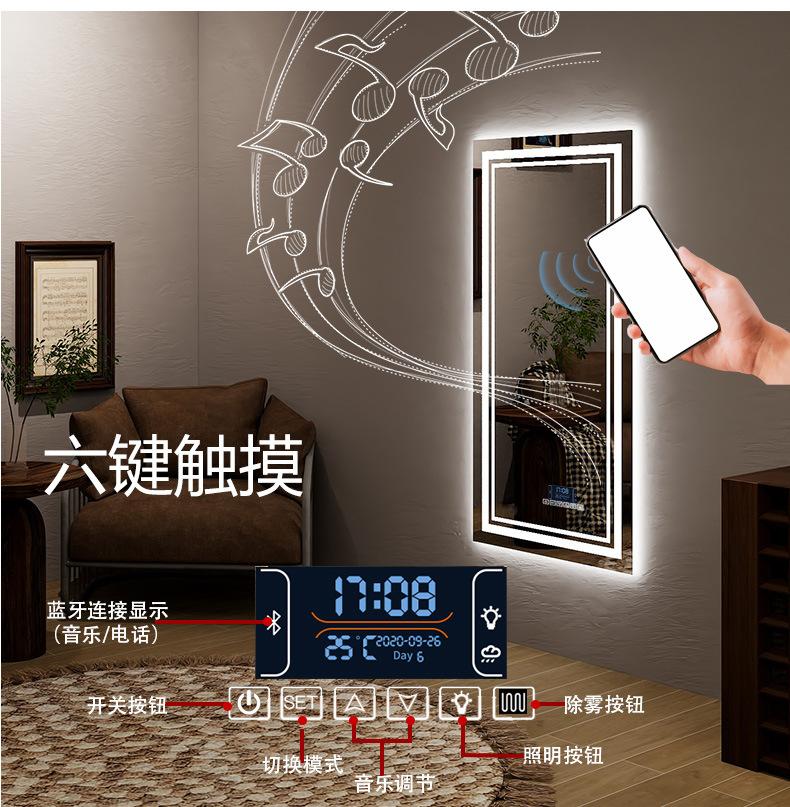 Espejo inteligente cuadrado para comercio electrónico transfronterizo con pantalla táctil e inducción por radar, espejo de baño para inodoro antivaho, maquillaje sub