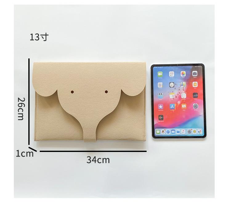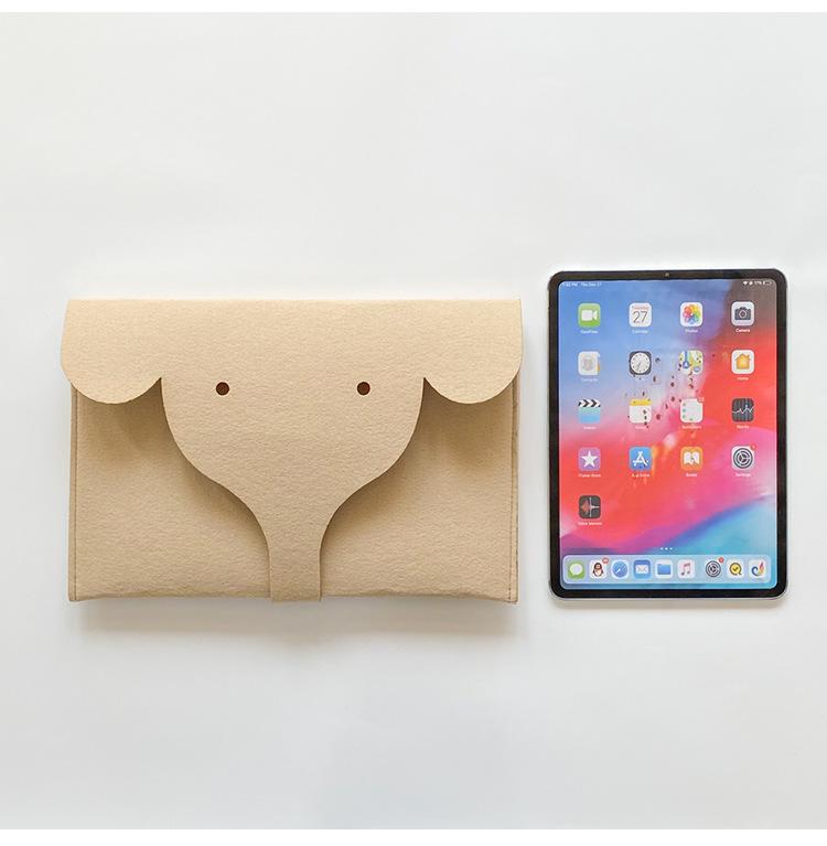 Estilo coreano ins fieltro de lana personalizado creativo elefante ipad forro bolsa de almacenamiento bolsa de almacenamiento para computadora tableta de 13 pulgadas