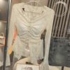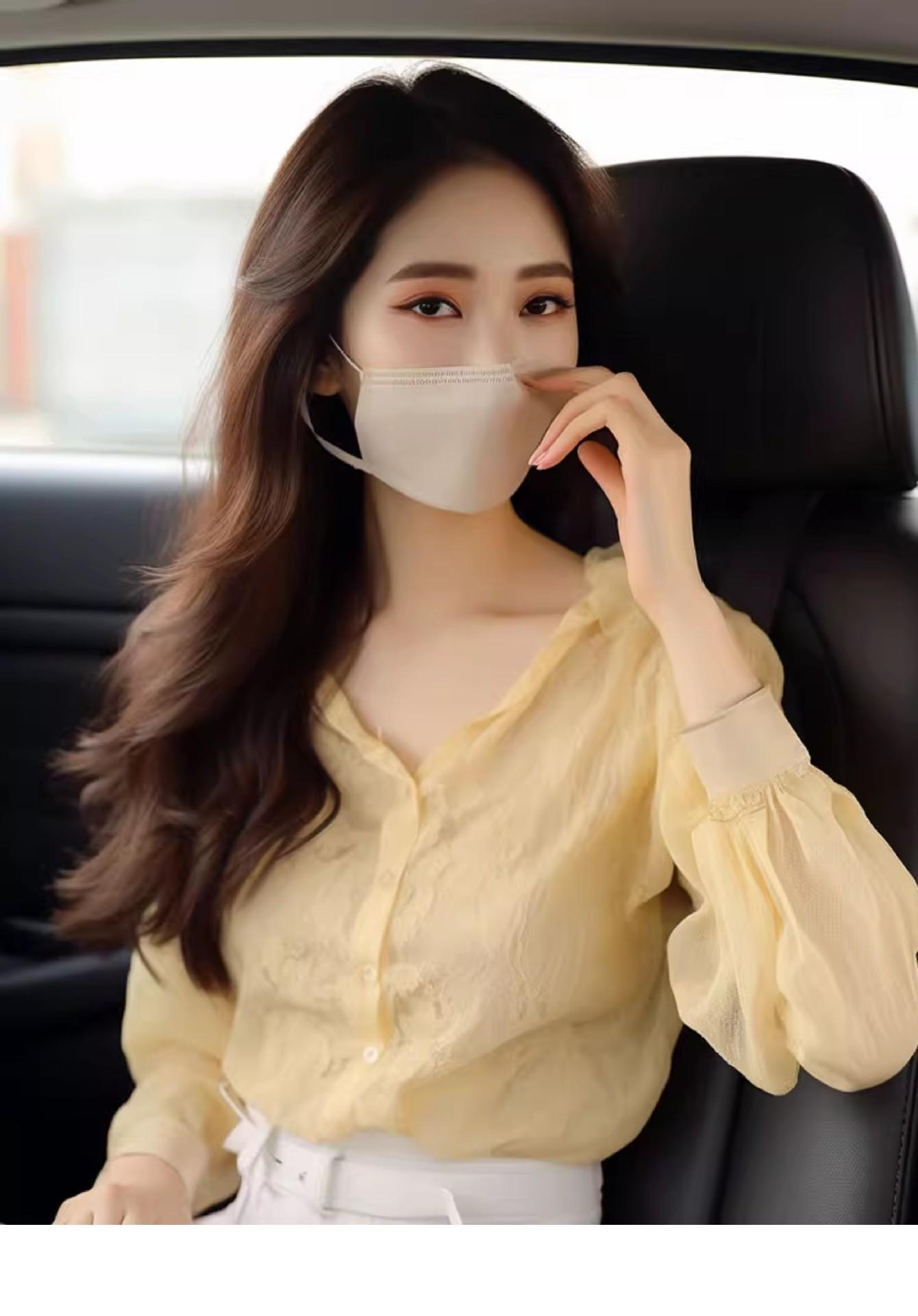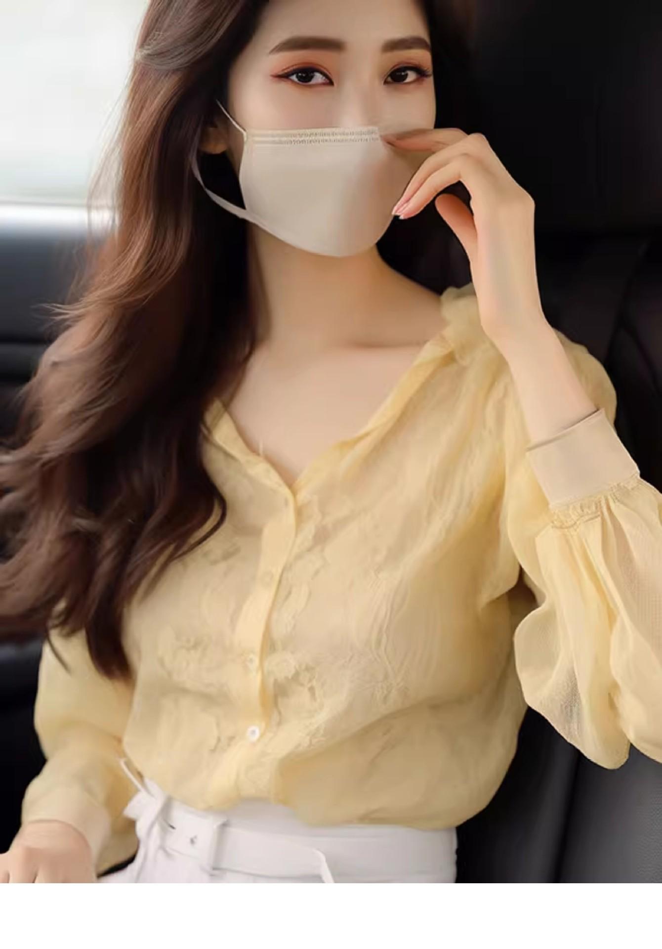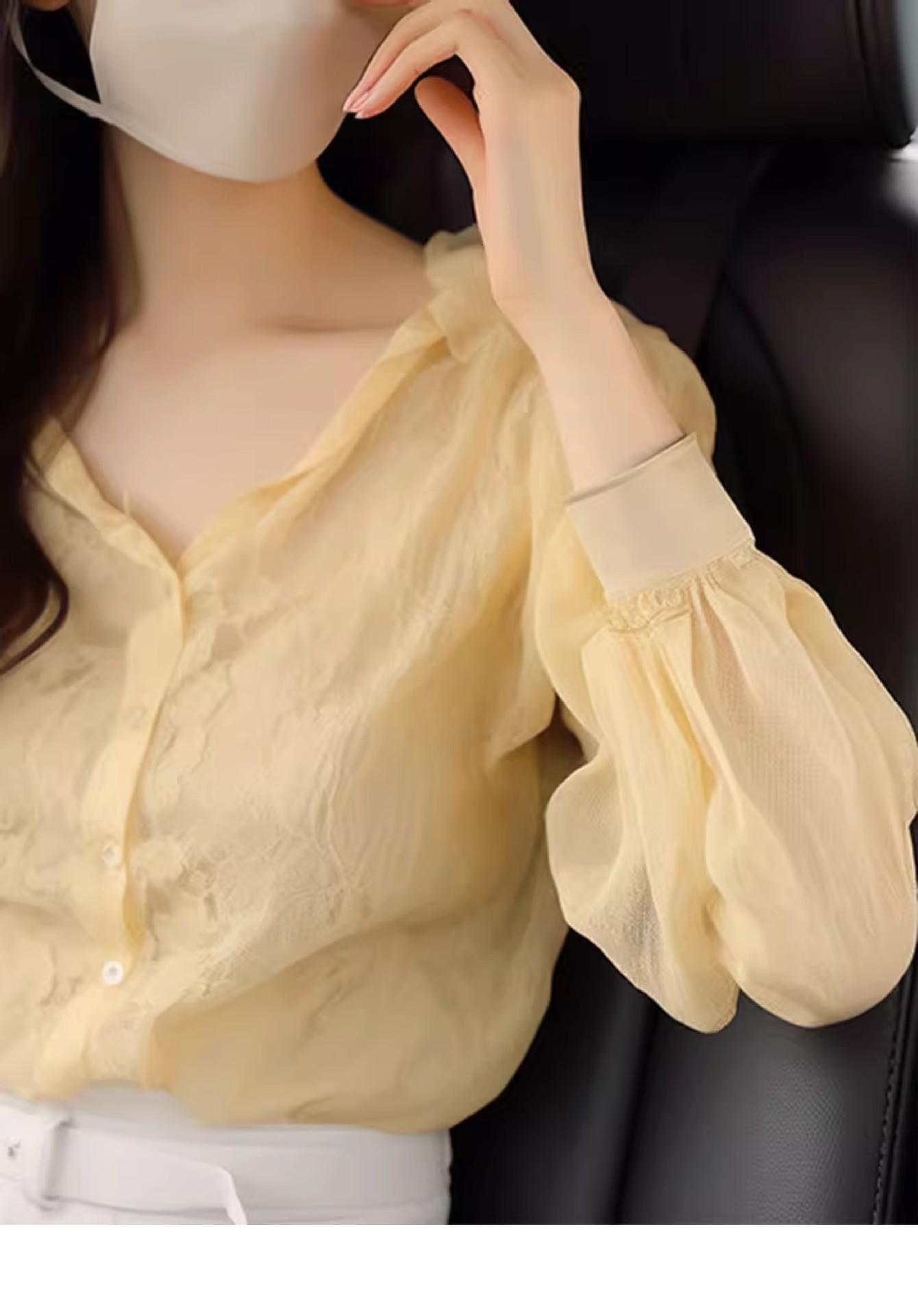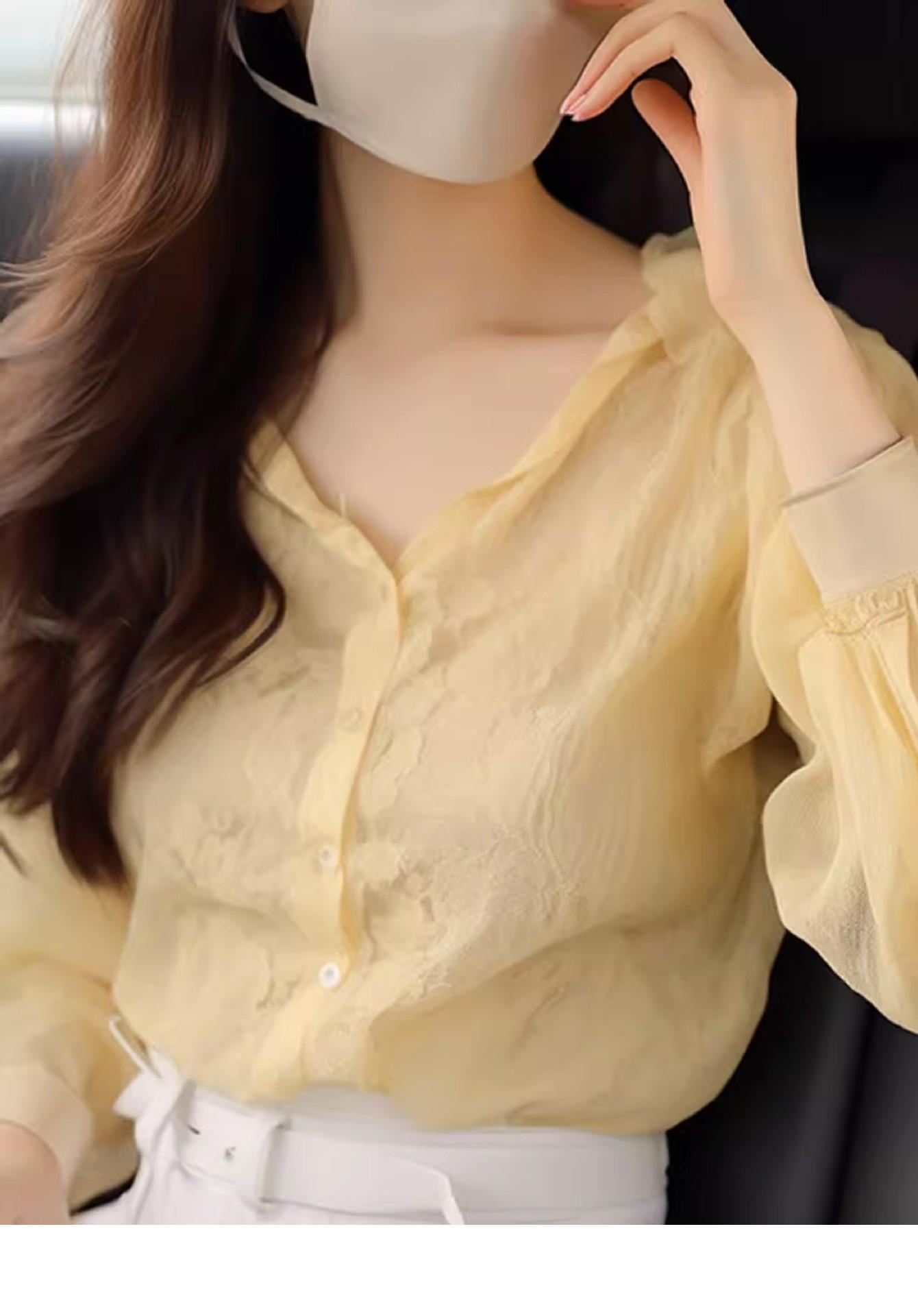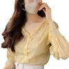 Verano Nueva Camisa Amarilla de Gasa 2024 Europea Delgada Camisa Pequeña Top Francés con Cuello en V para Mujer Trendy
