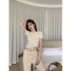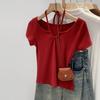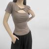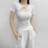 Camiseta de manga corta con botones calados y diseño de chica sexy europea y americana para mujer, novedad de verano 2024, top sexy ajustado