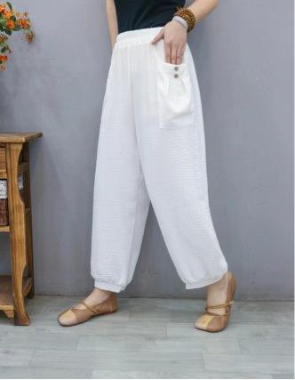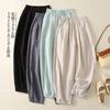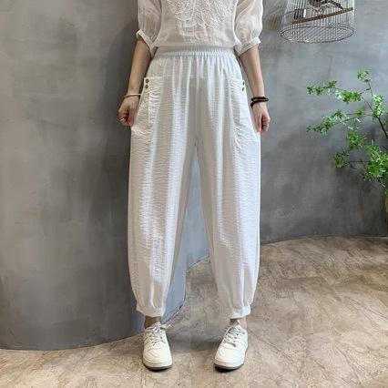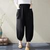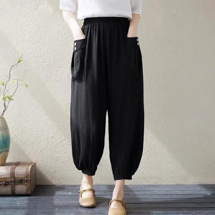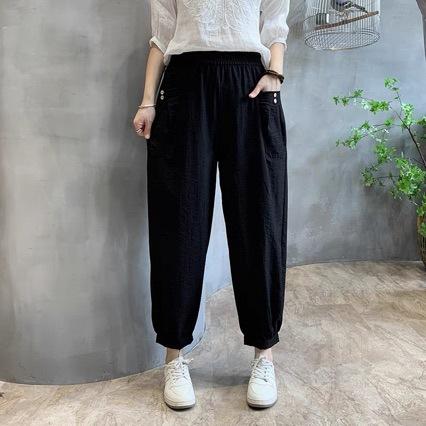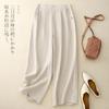 Foto Real en Stock Verano 2025 Estilo Coreano Algodón y Lino Talla Grande Pantalones Recortados Ajuste Holgado Adelgazantes Pantalones Casuales para Mujer
