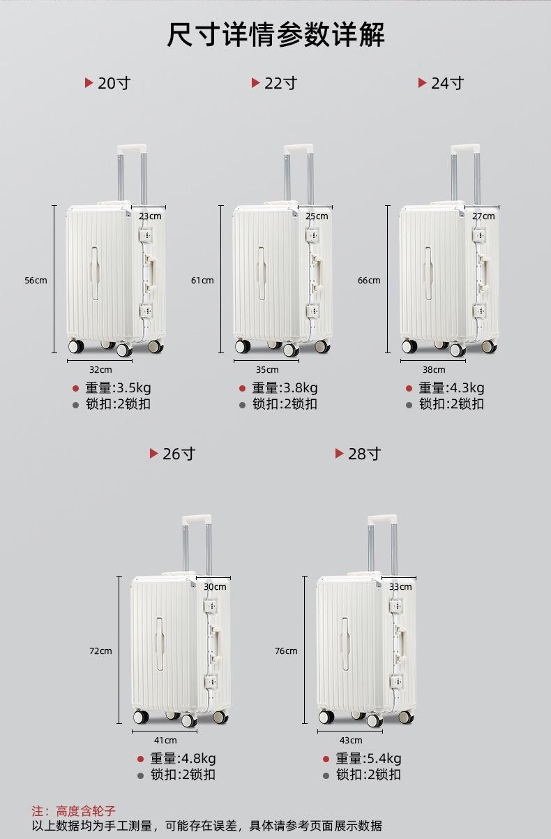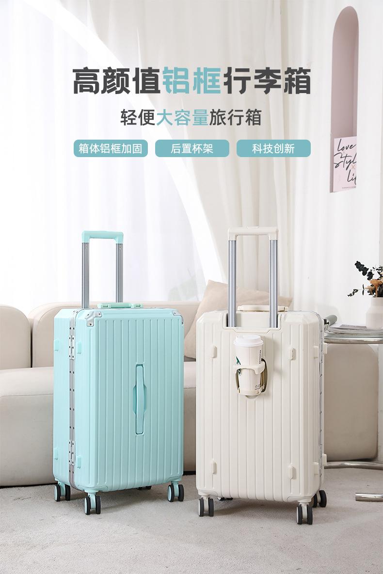 Maleta con marco de aluminio para mujer, maleta con ruedas universales de 20 pulgadas, maleta duradera para estudiantes masculinos, con contraseña y estuche de cuero.