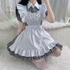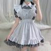 Anime Japonés Traje de Criada Lolita Femenino Vestido a Cuadros para Restaurante Cafetería Set de Disfraz para Cosplay