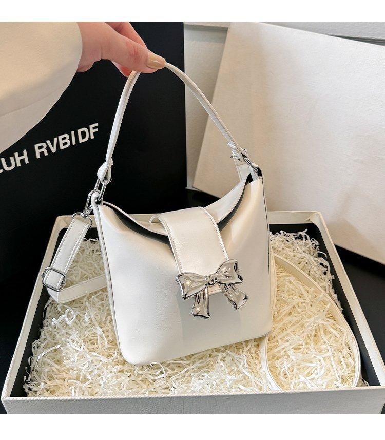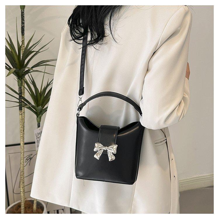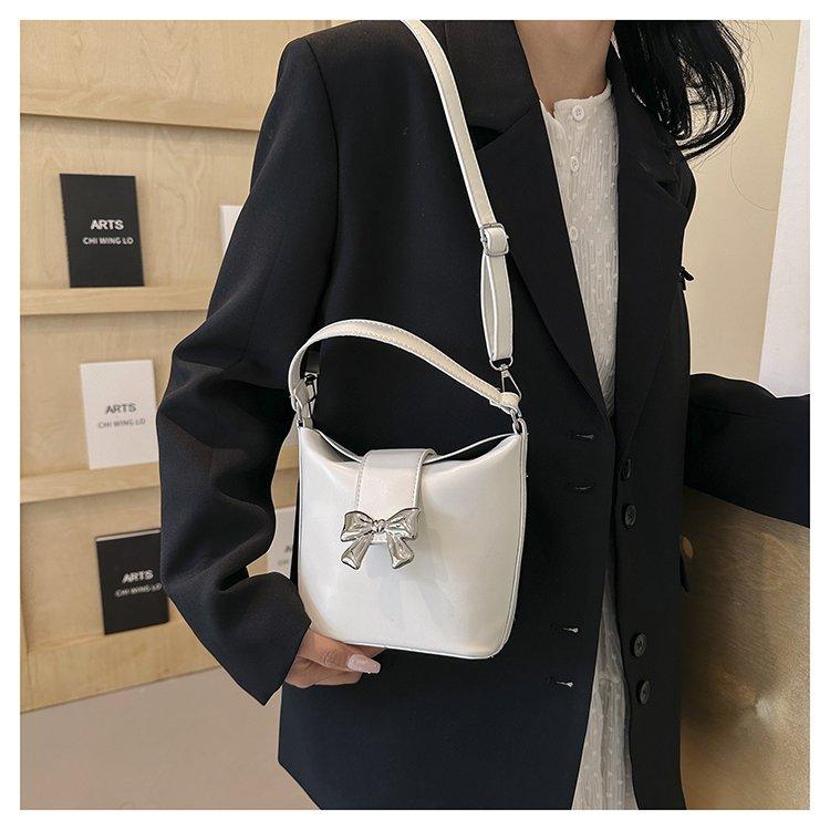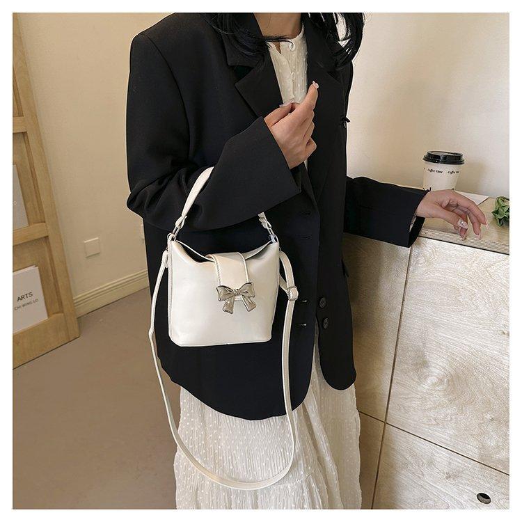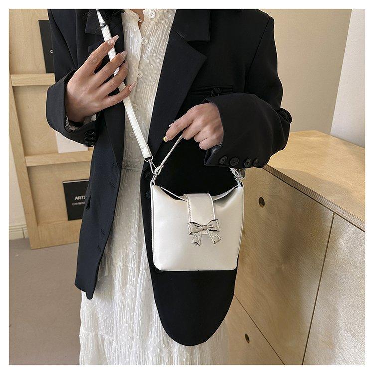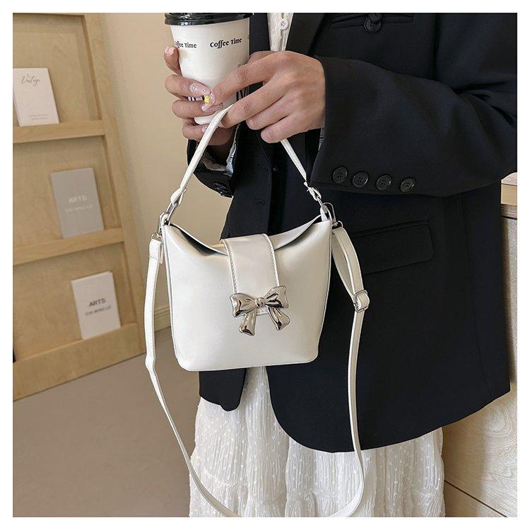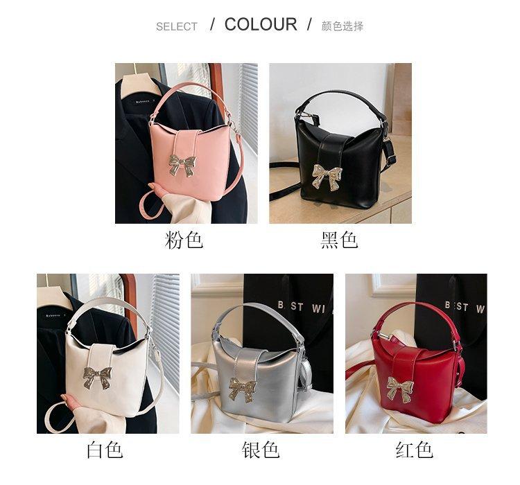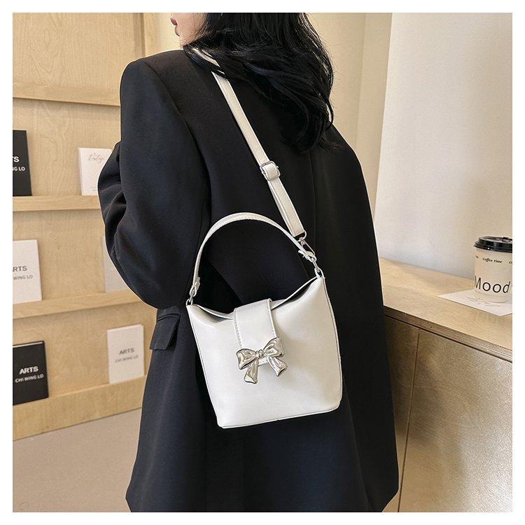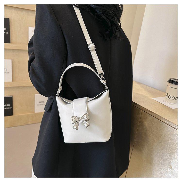 Bolso de mano con lazo de color liso para mujer, bandolera de hombro sencilla y popular, de verano 2024
