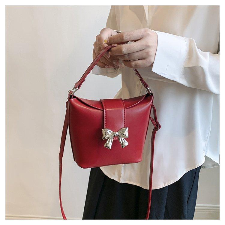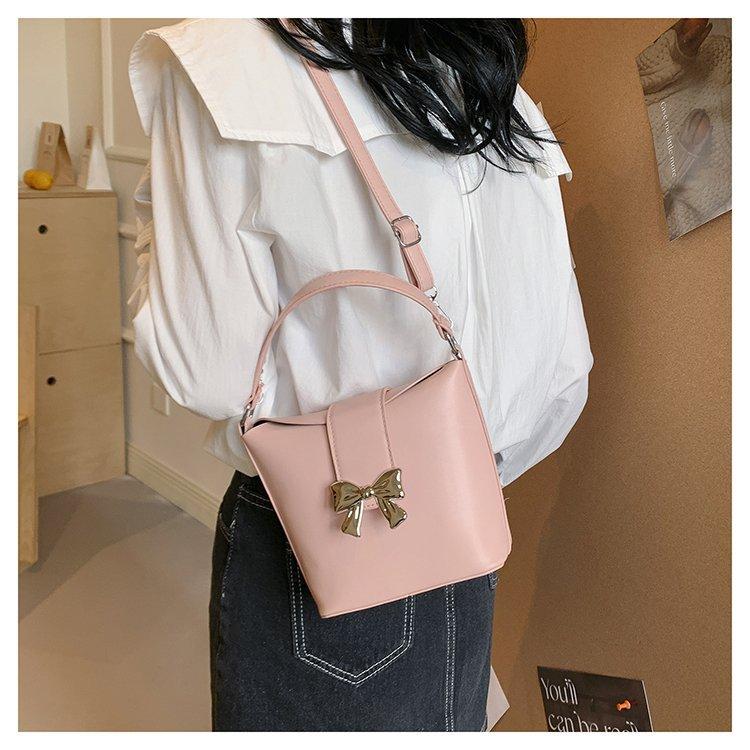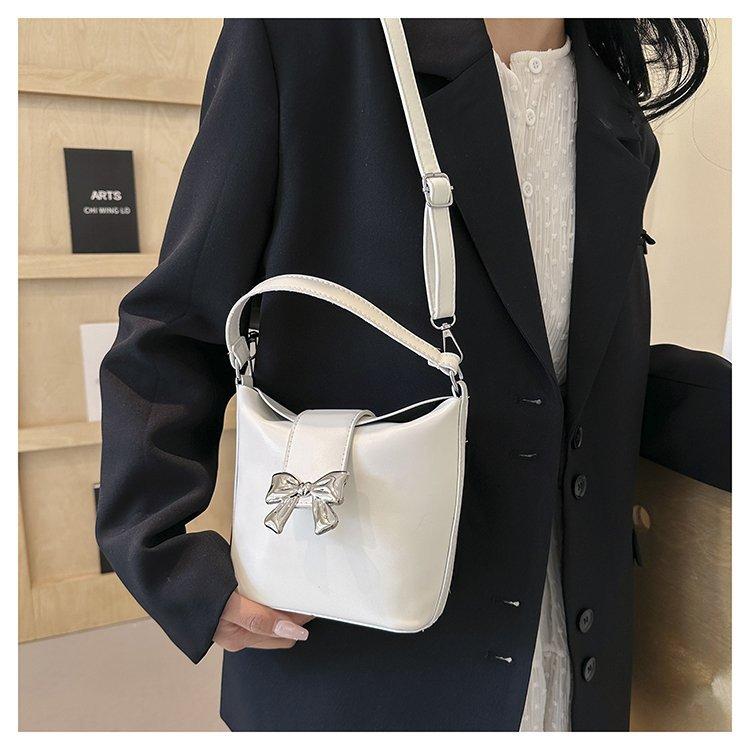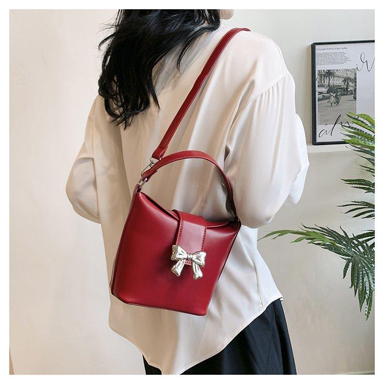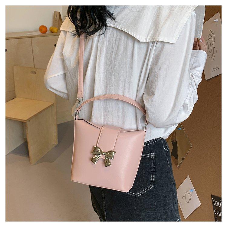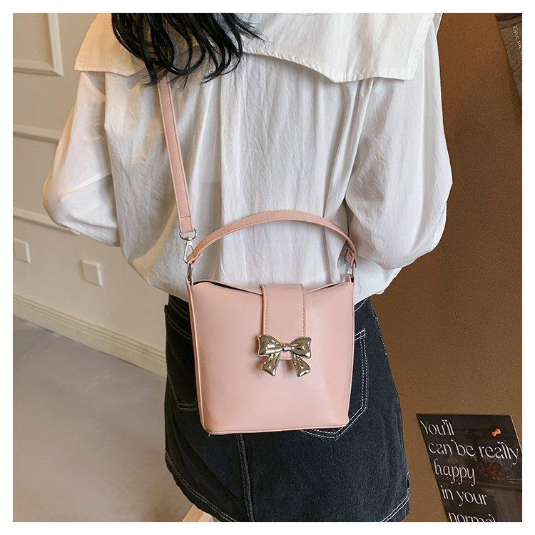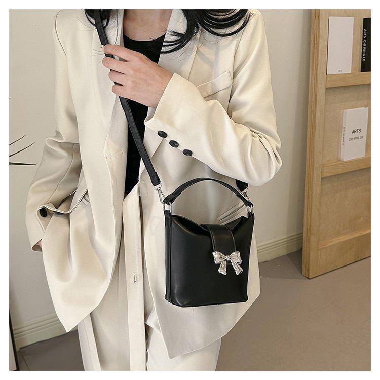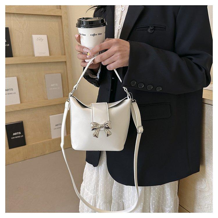Bolso de mano con lazo de color liso para mujer, bandolera de hombro sencilla y popular, de verano 2024