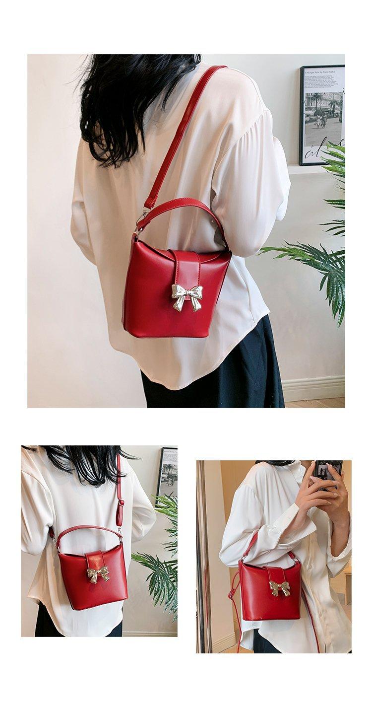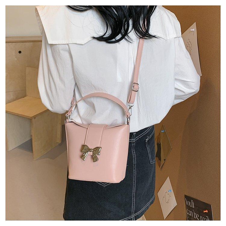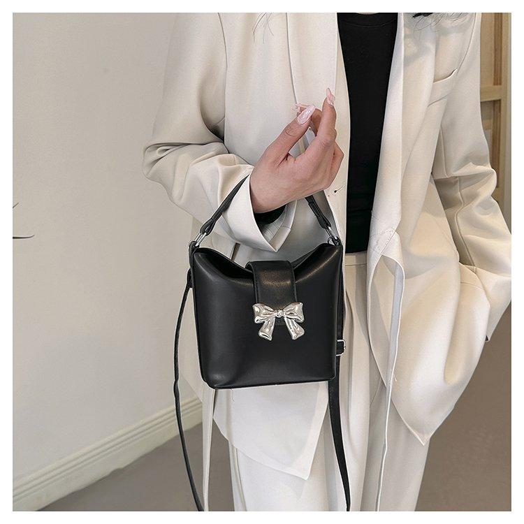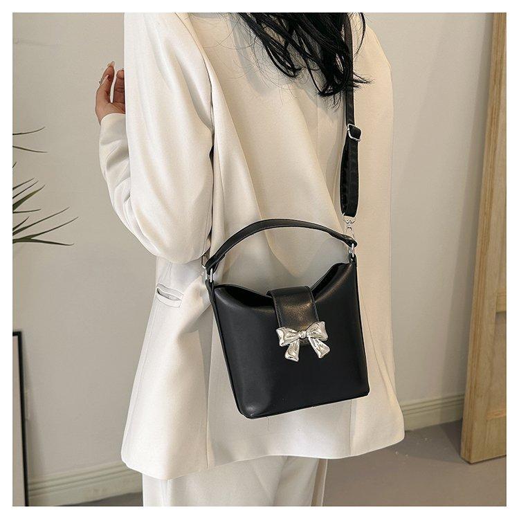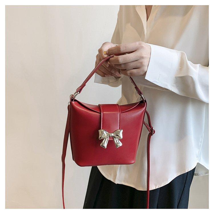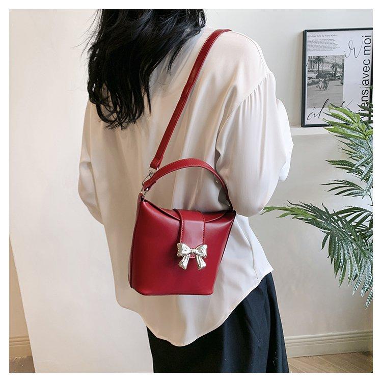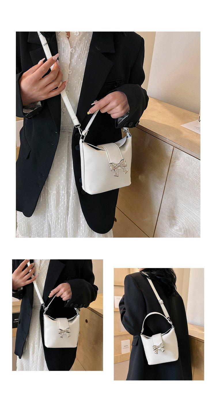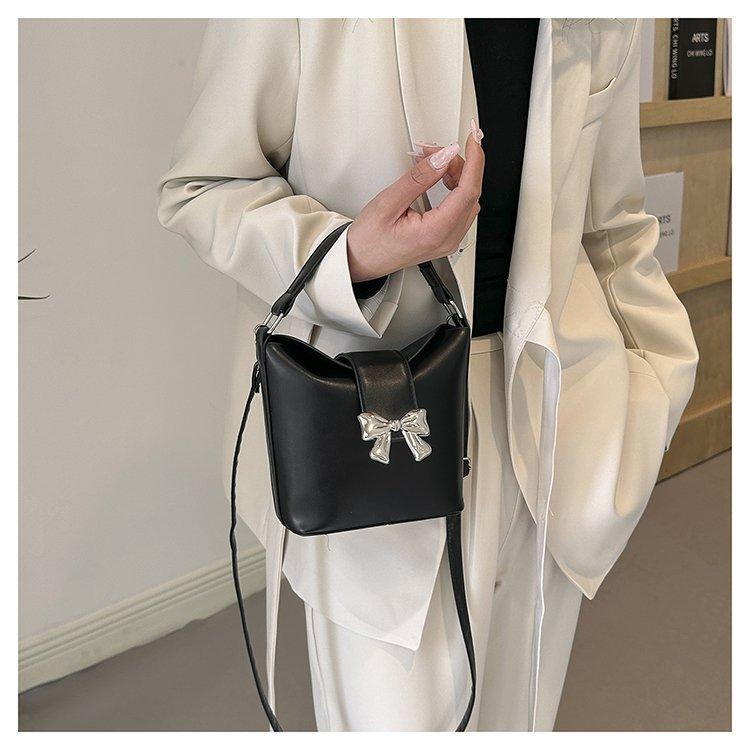 Bolso de mano con lazo de color liso para mujer, bandolera de hombro sencilla y popular, de verano 2024