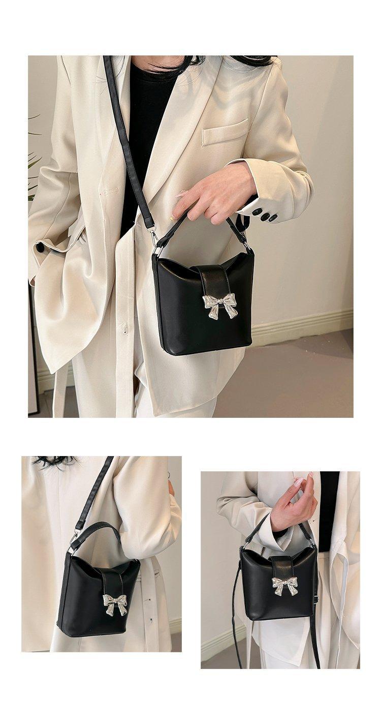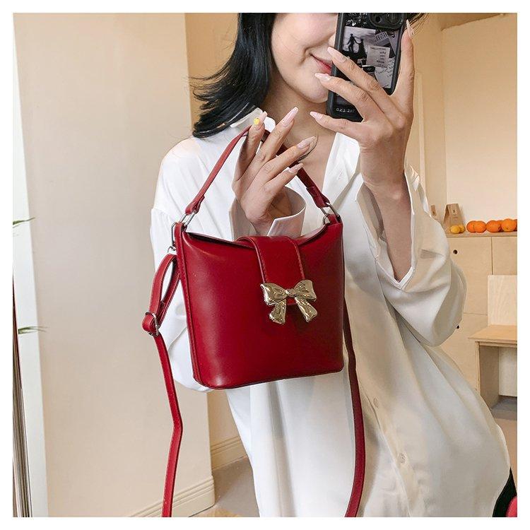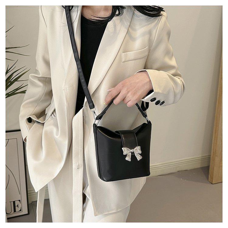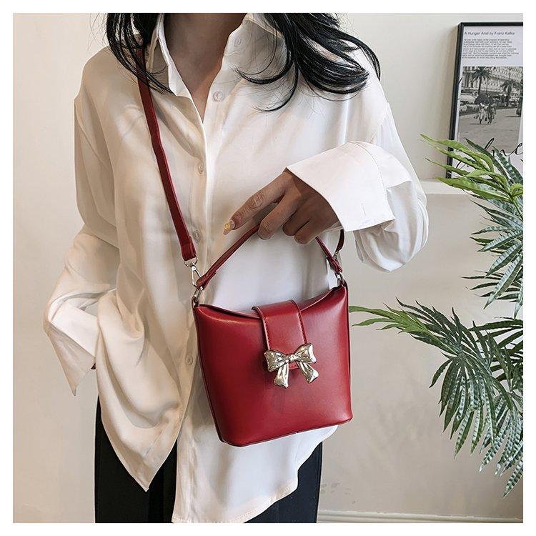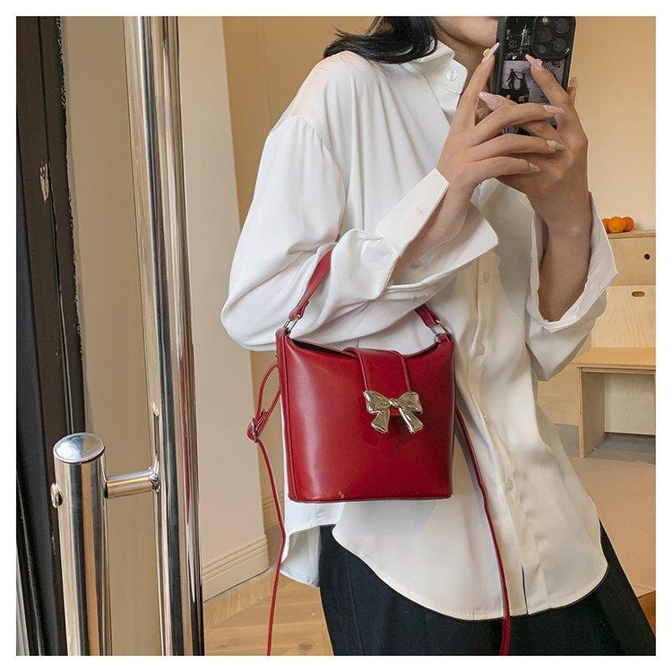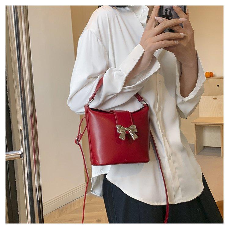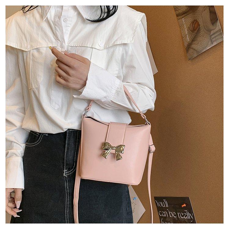 Bolso de mano con lazo de color liso para mujer, bandolera de hombro sencilla y popular, de verano 2024