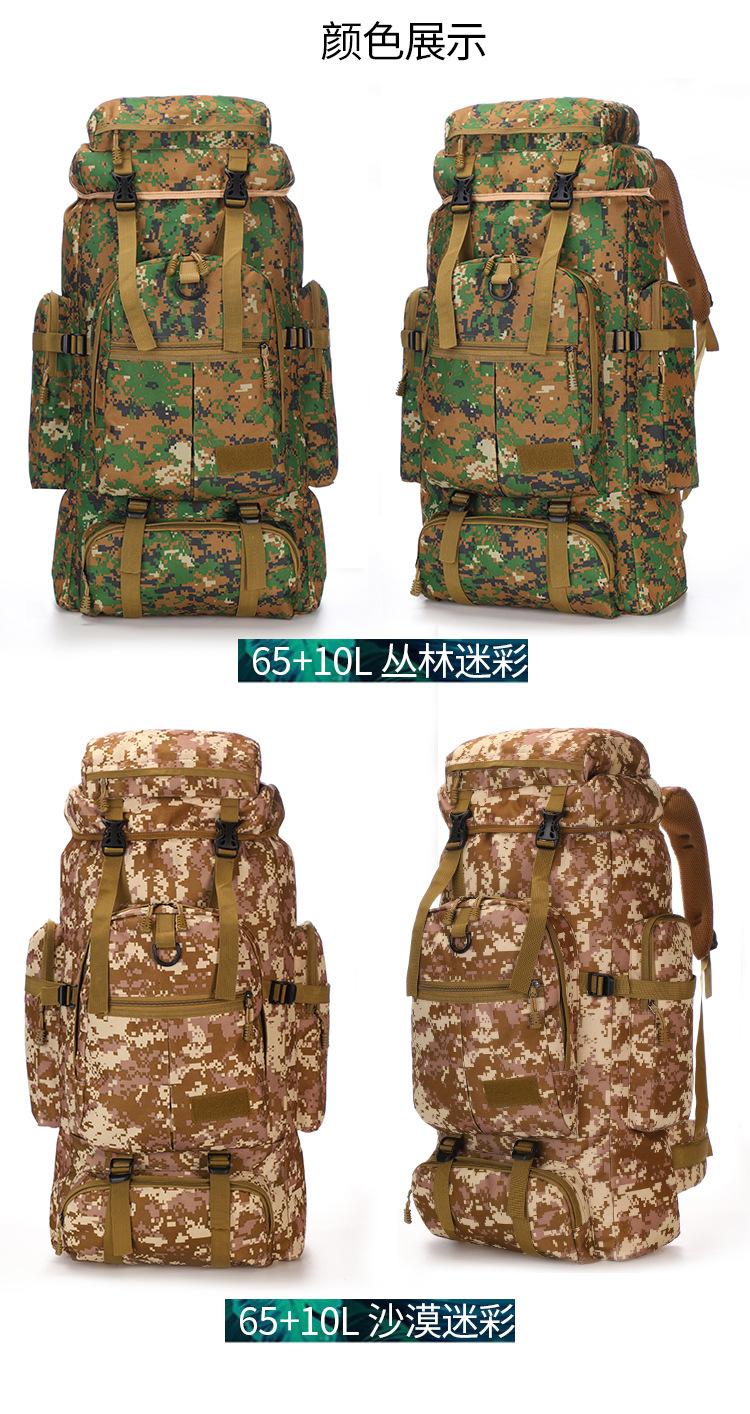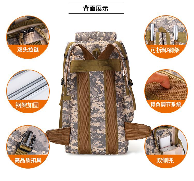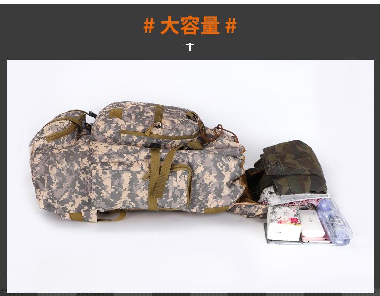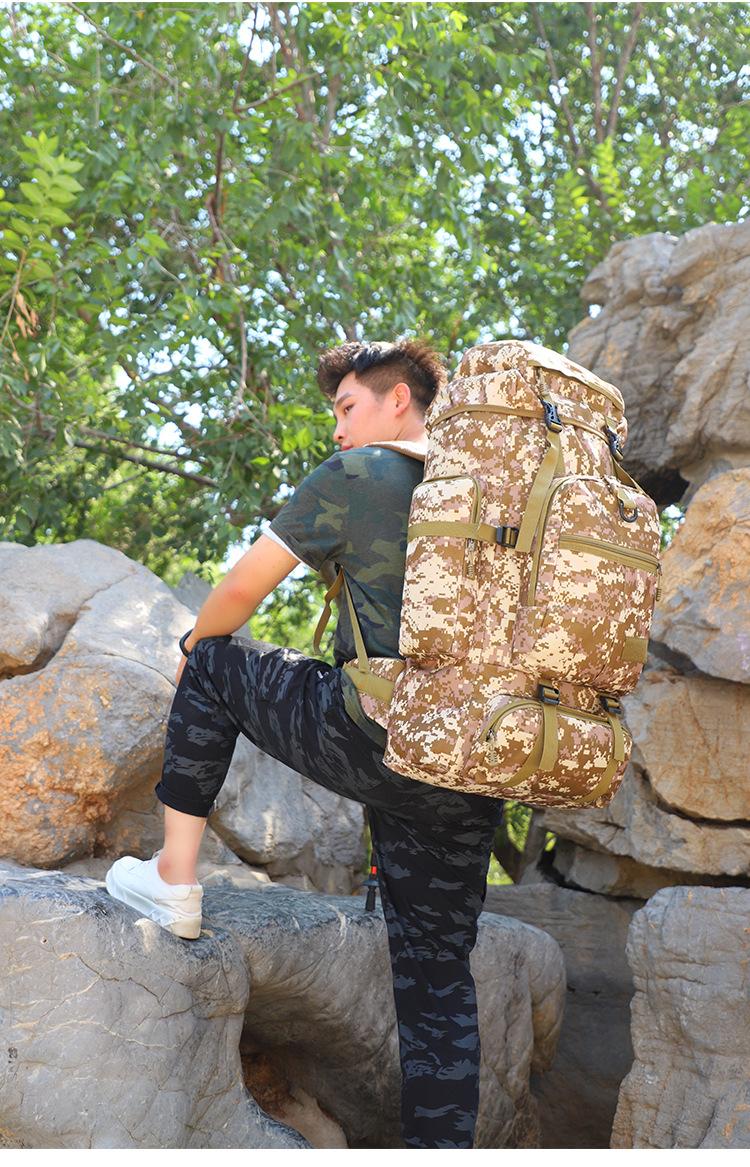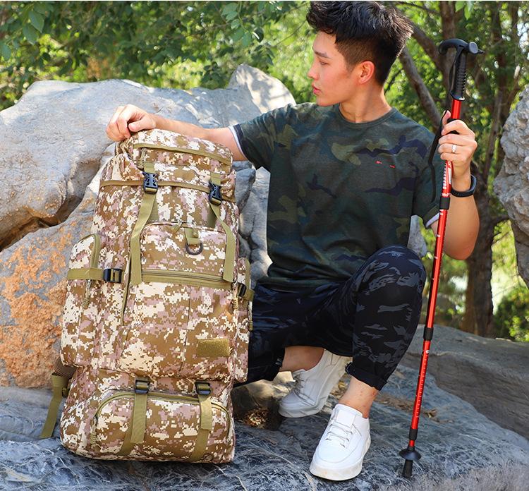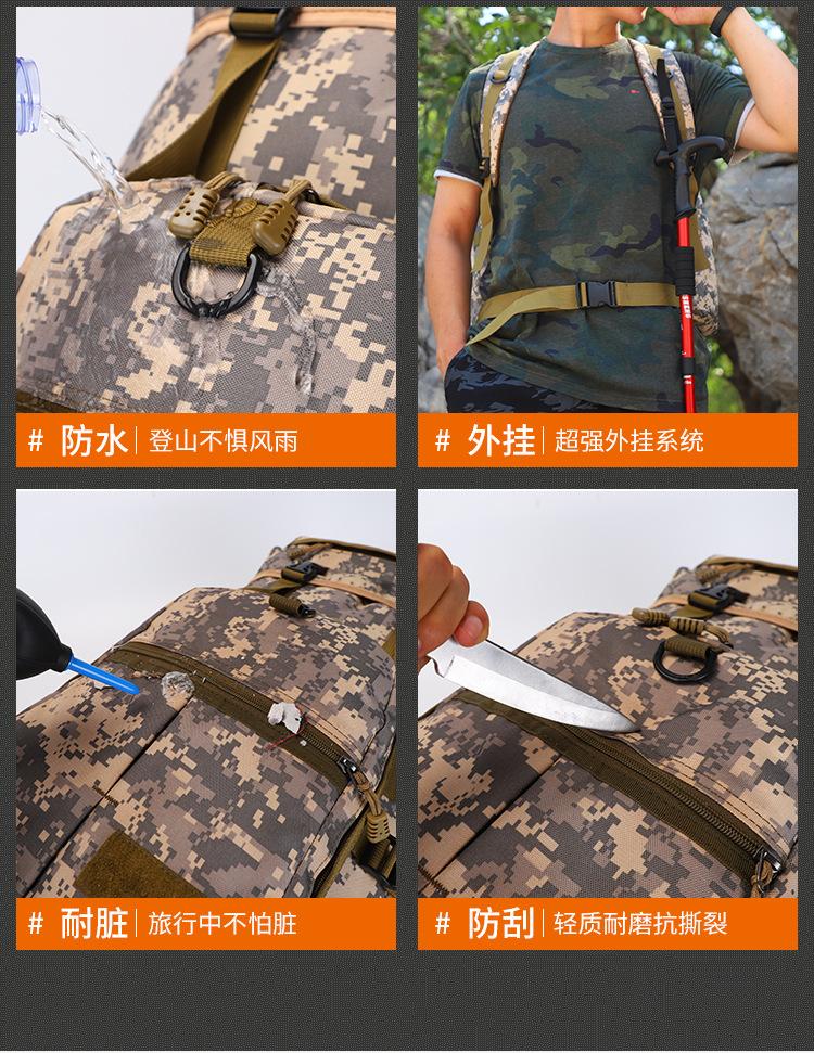 Mochila deportiva táctica de camuflaje para exteriores, nueva, transfronteriza, de 75 l, impermeable, para senderismo, con soporte