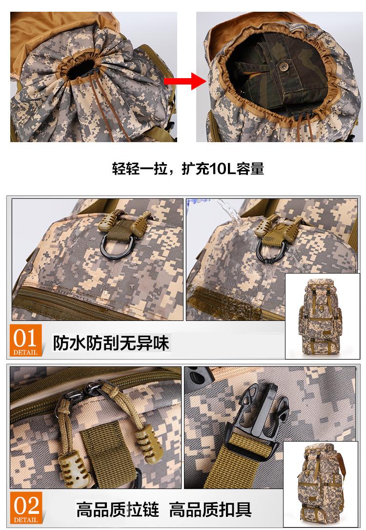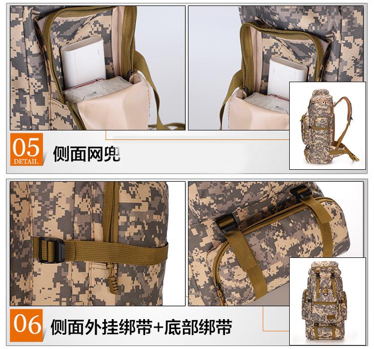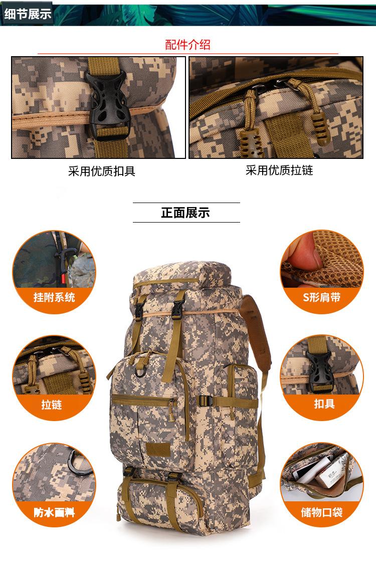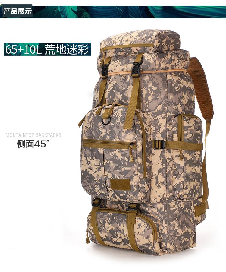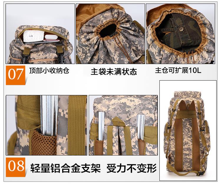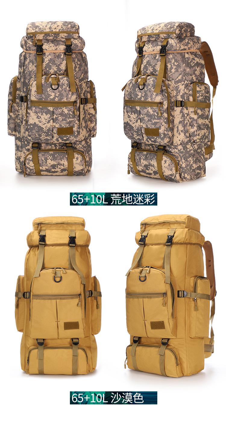 Mochila deportiva táctica de camuflaje para exteriores, nueva, transfronteriza, de 75 l, impermeable, para senderismo, con soporte