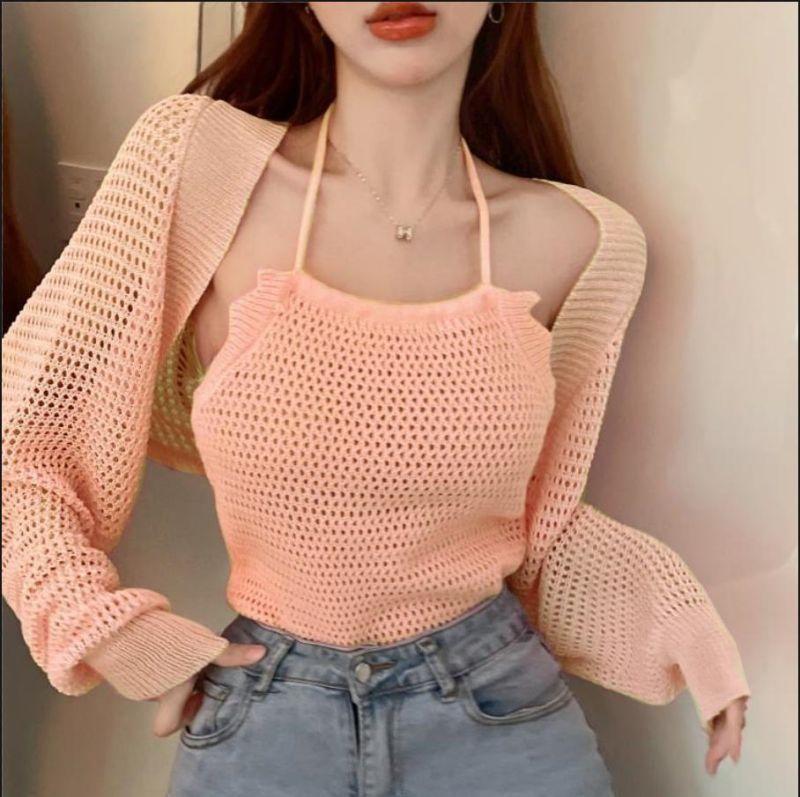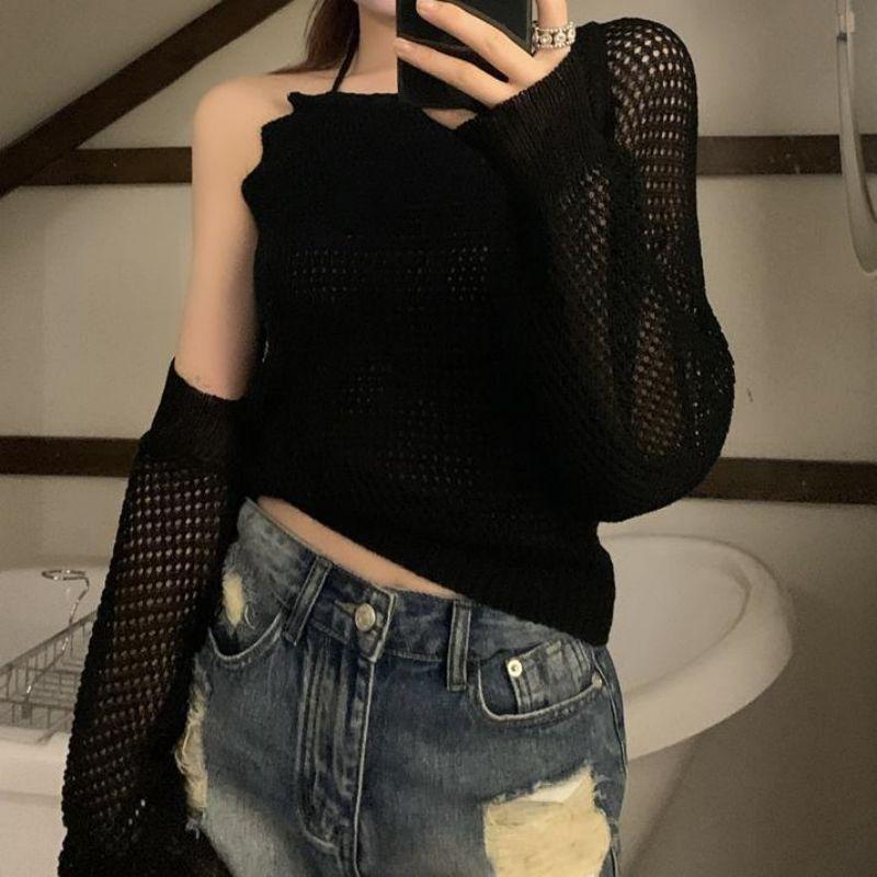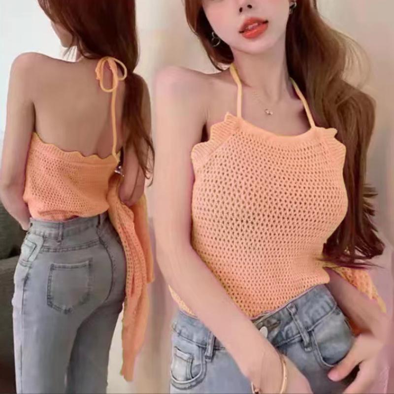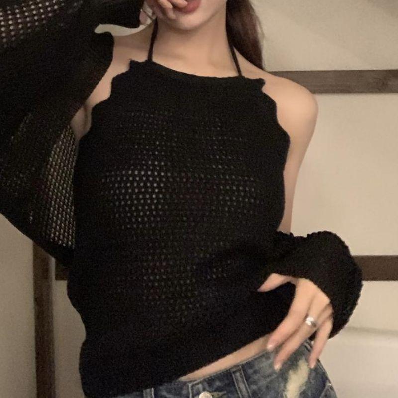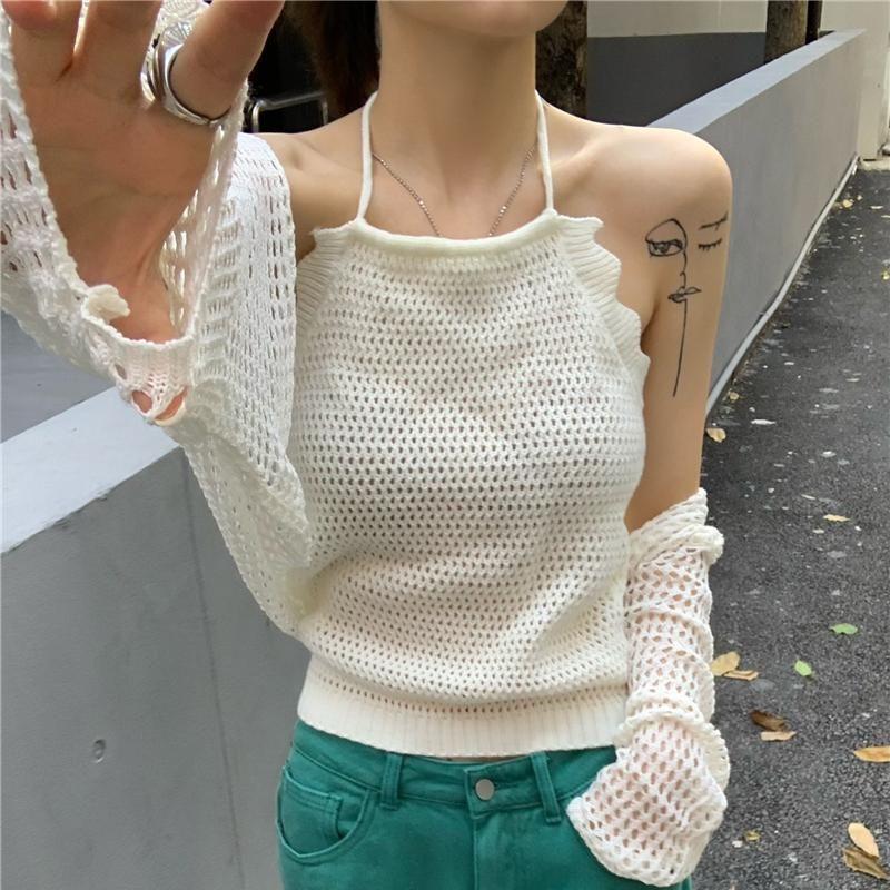 Compra Camisola de punto con cuello halter y abertura interior para mujer, estilo Spice Girl, 2023 al por mayor en Joom.pro