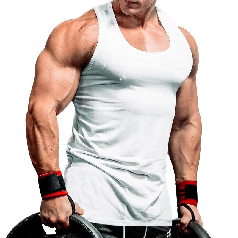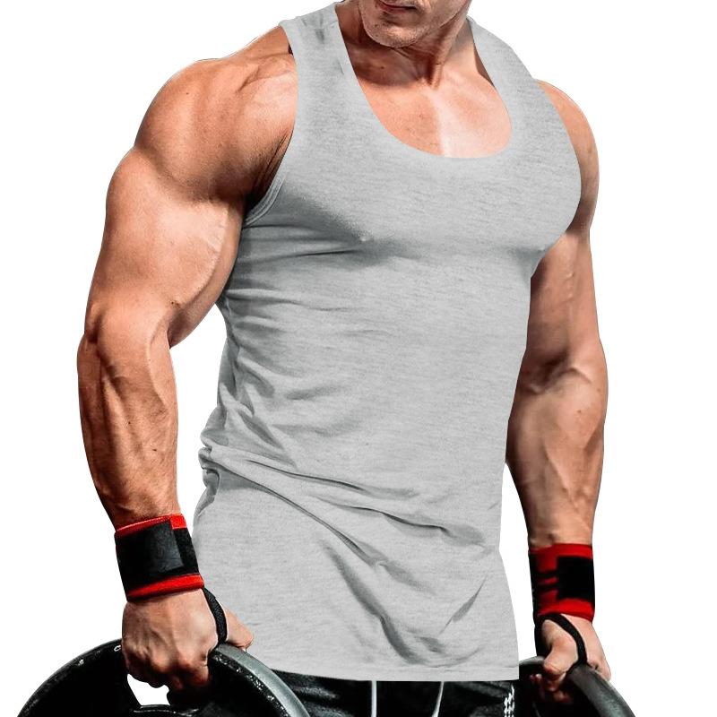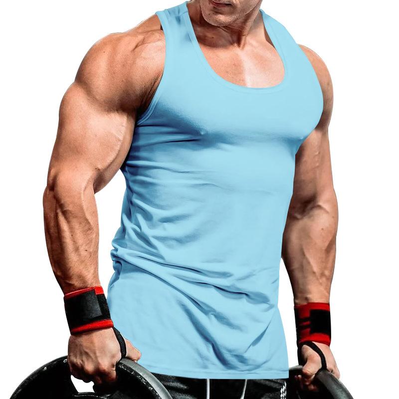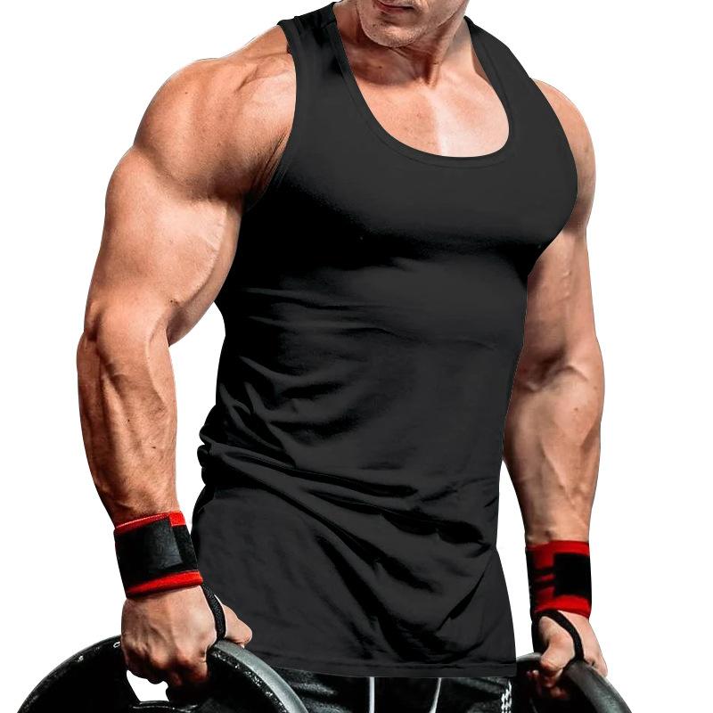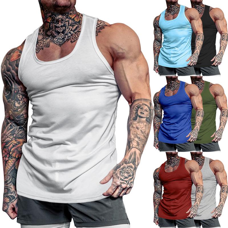 Camiseta interior deportiva de entrenamiento integral de verano de color sólido para culturismo y fitness para hombre de comercio exterior transfronterizo