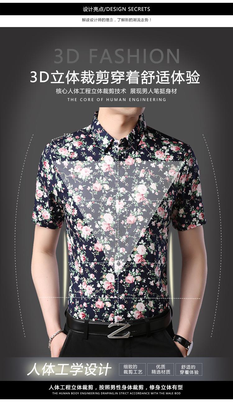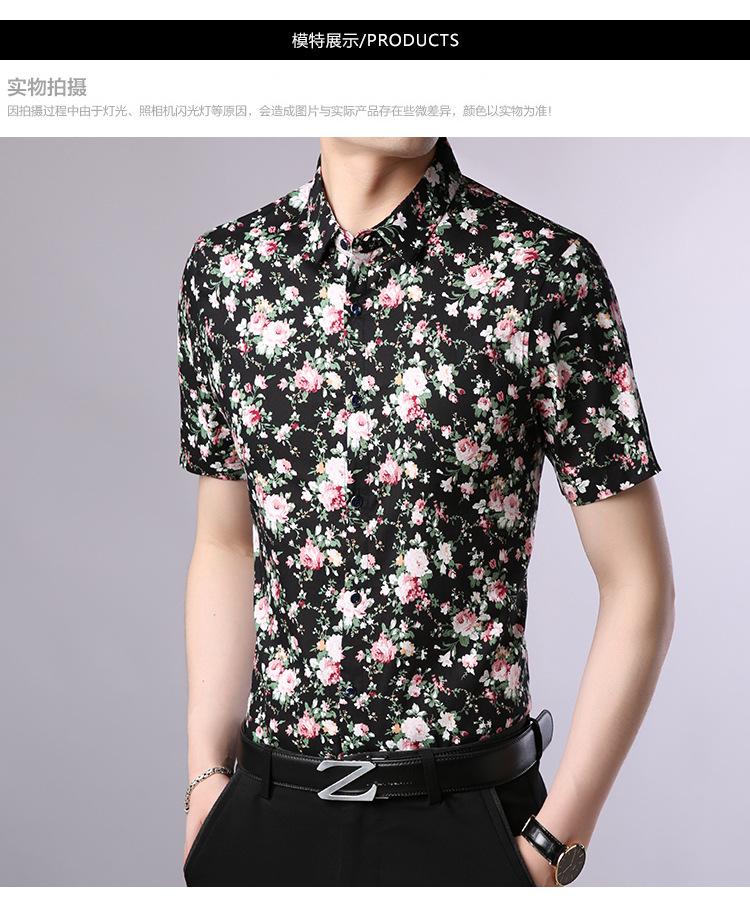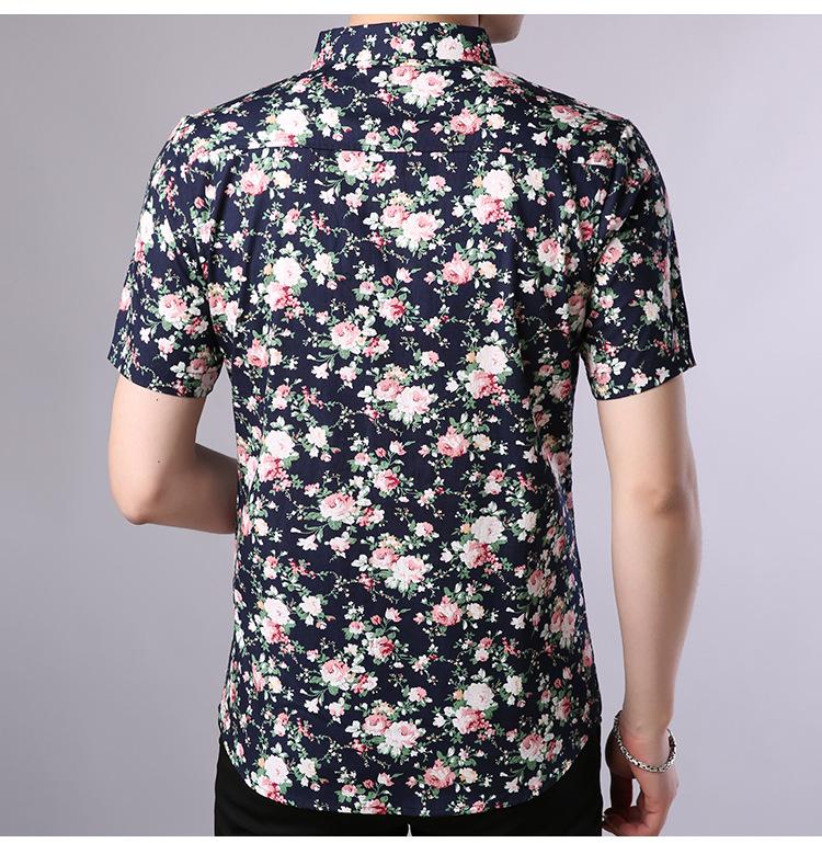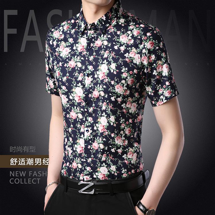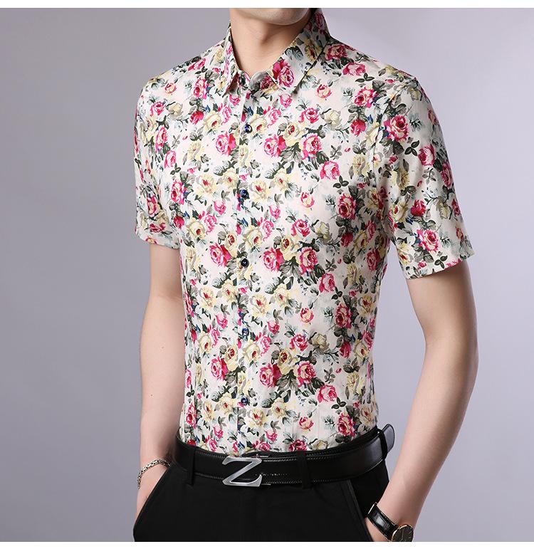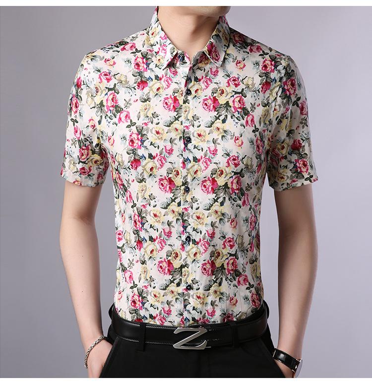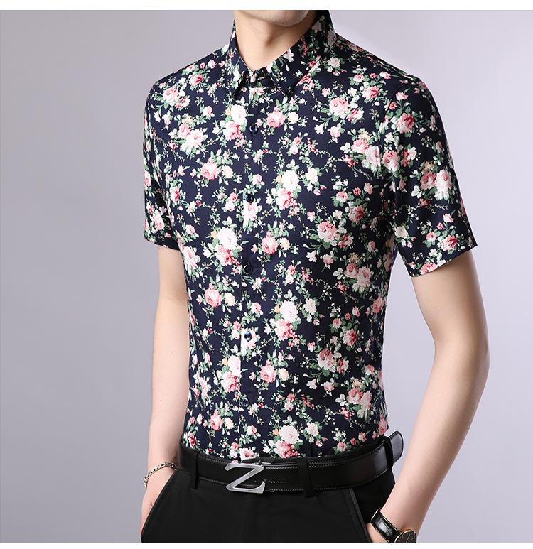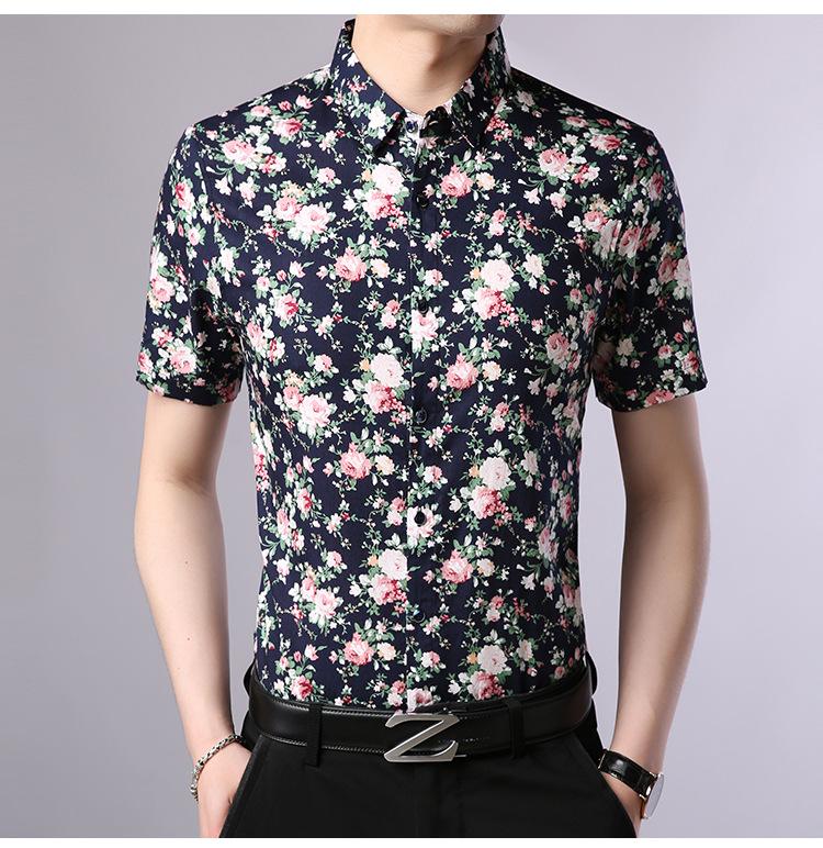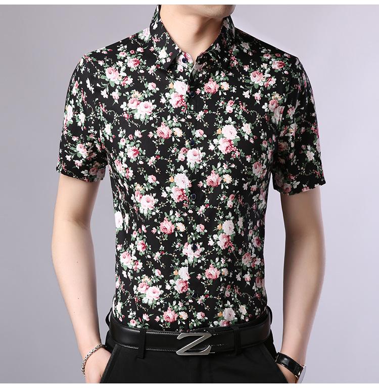 Camisa de Verano 2025 Estilo Caluroso Algodón Puro Business Casual Manga Corta para Hombre con Solapa y Estampado para Jóvenes y Mediana Edad