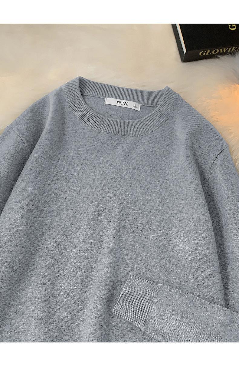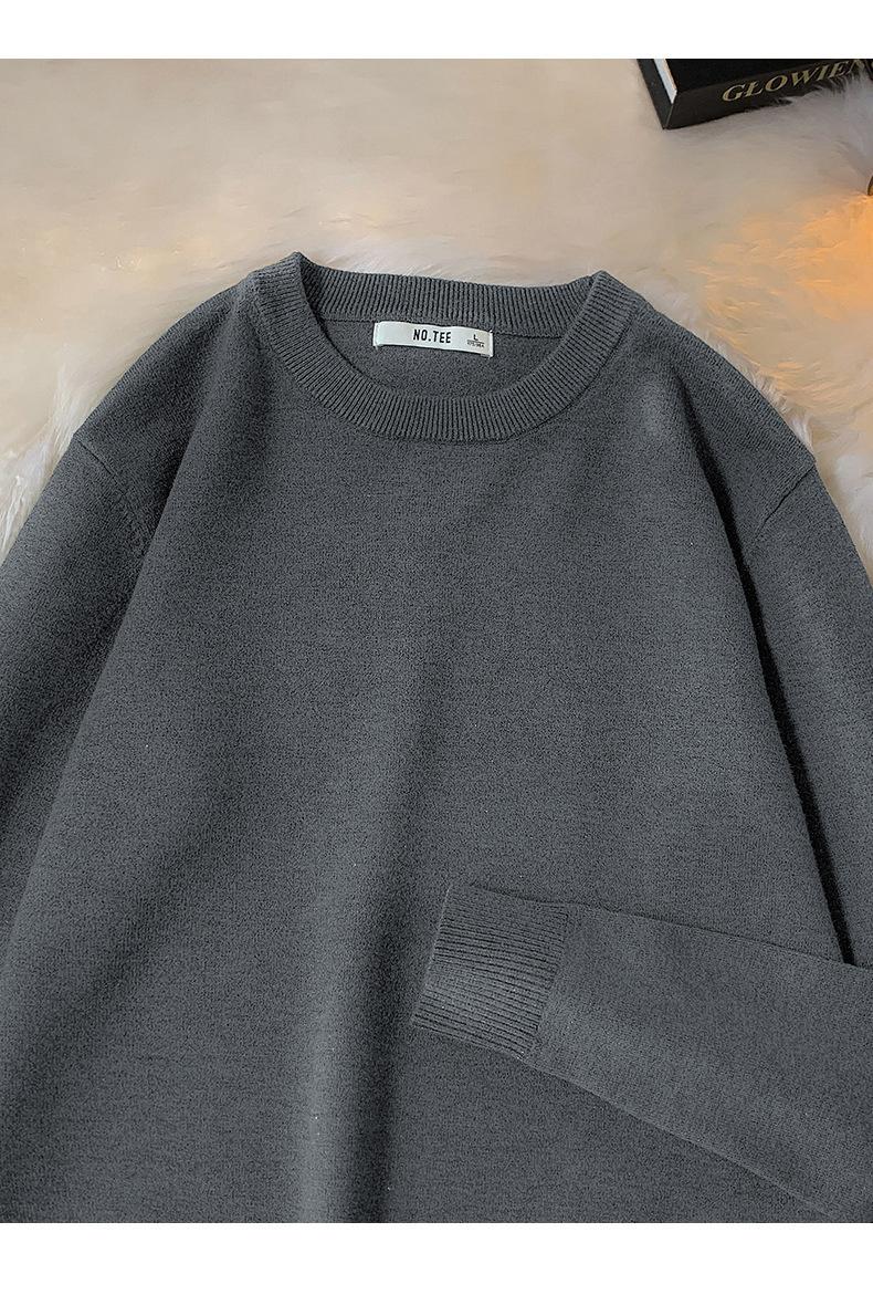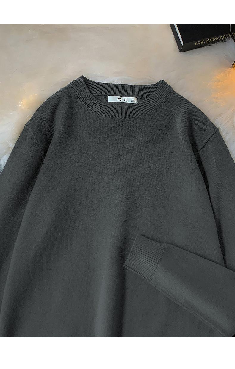 Suéter de cuello redondo para hombre, ropa interior cálida de otoño e invierno, suéter de camisa de color sólido, suéter de moda coreana