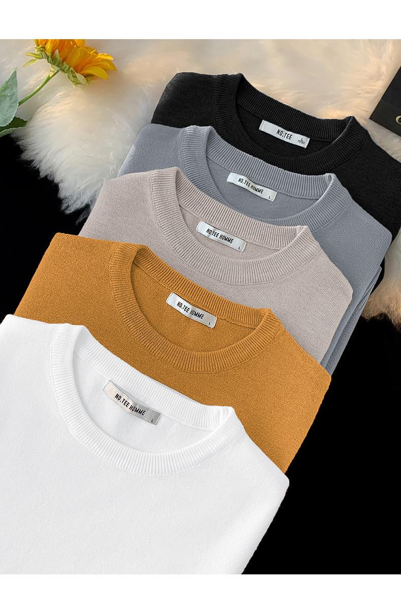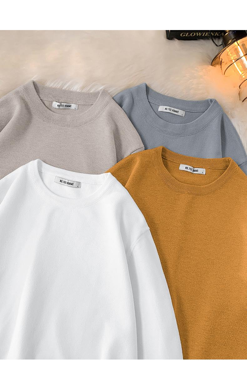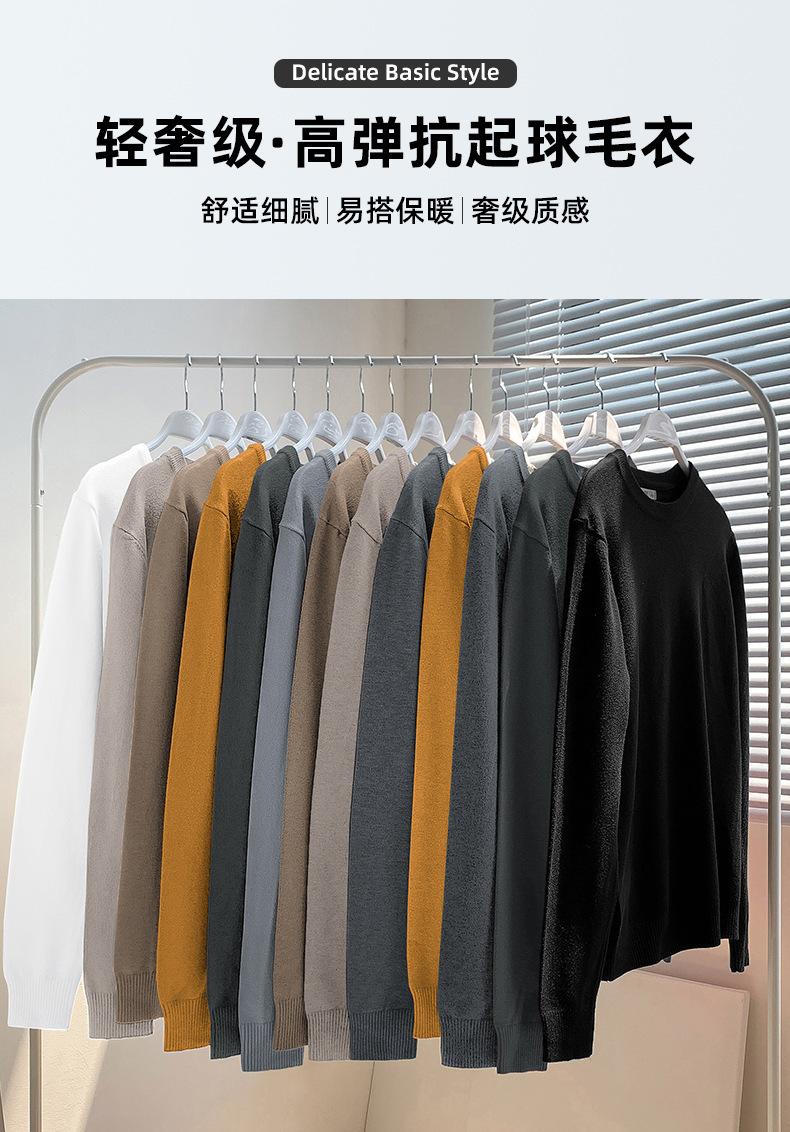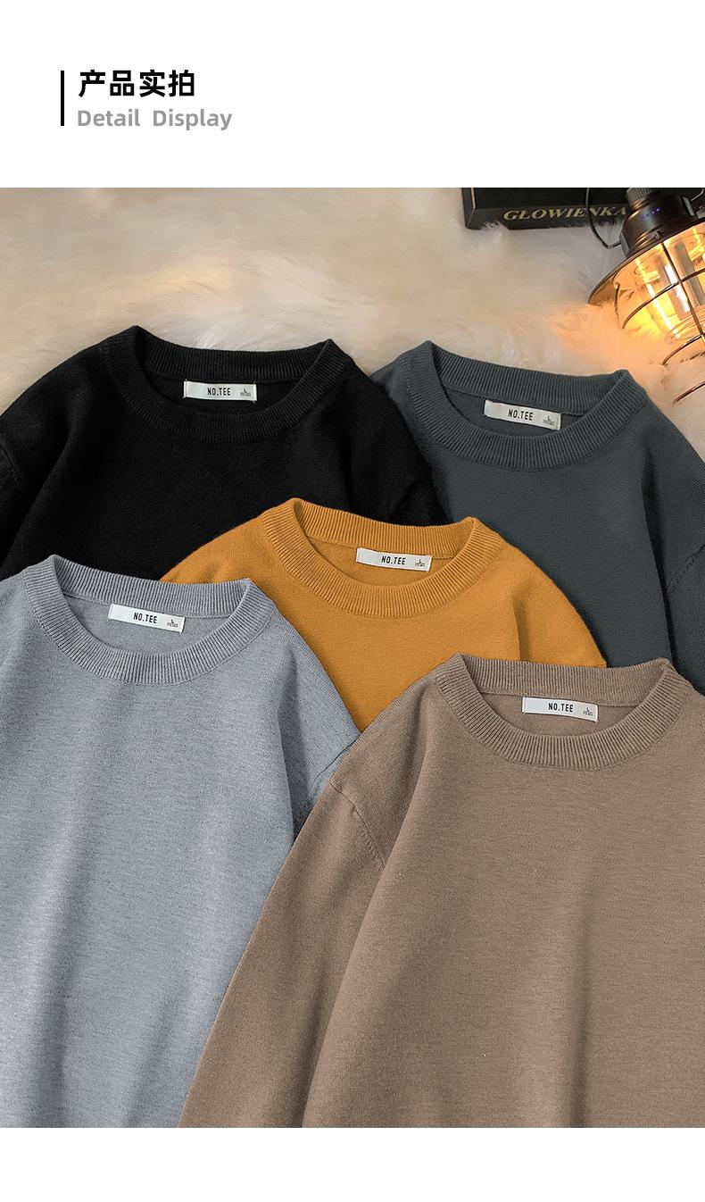 Suéter de cuello redondo para hombre, ropa interior cálida de otoño e invierno, suéter de camisa de color sólido, suéter de moda coreana