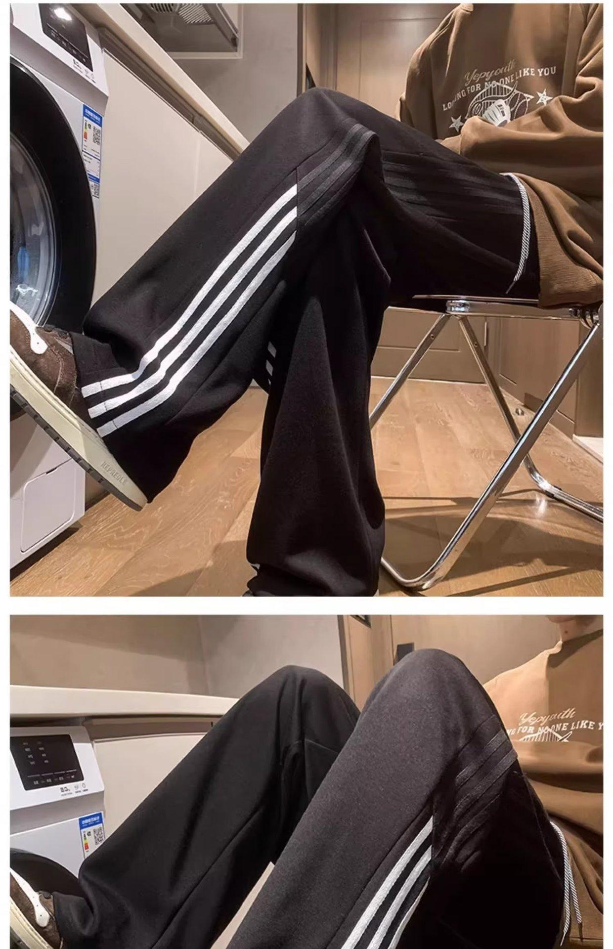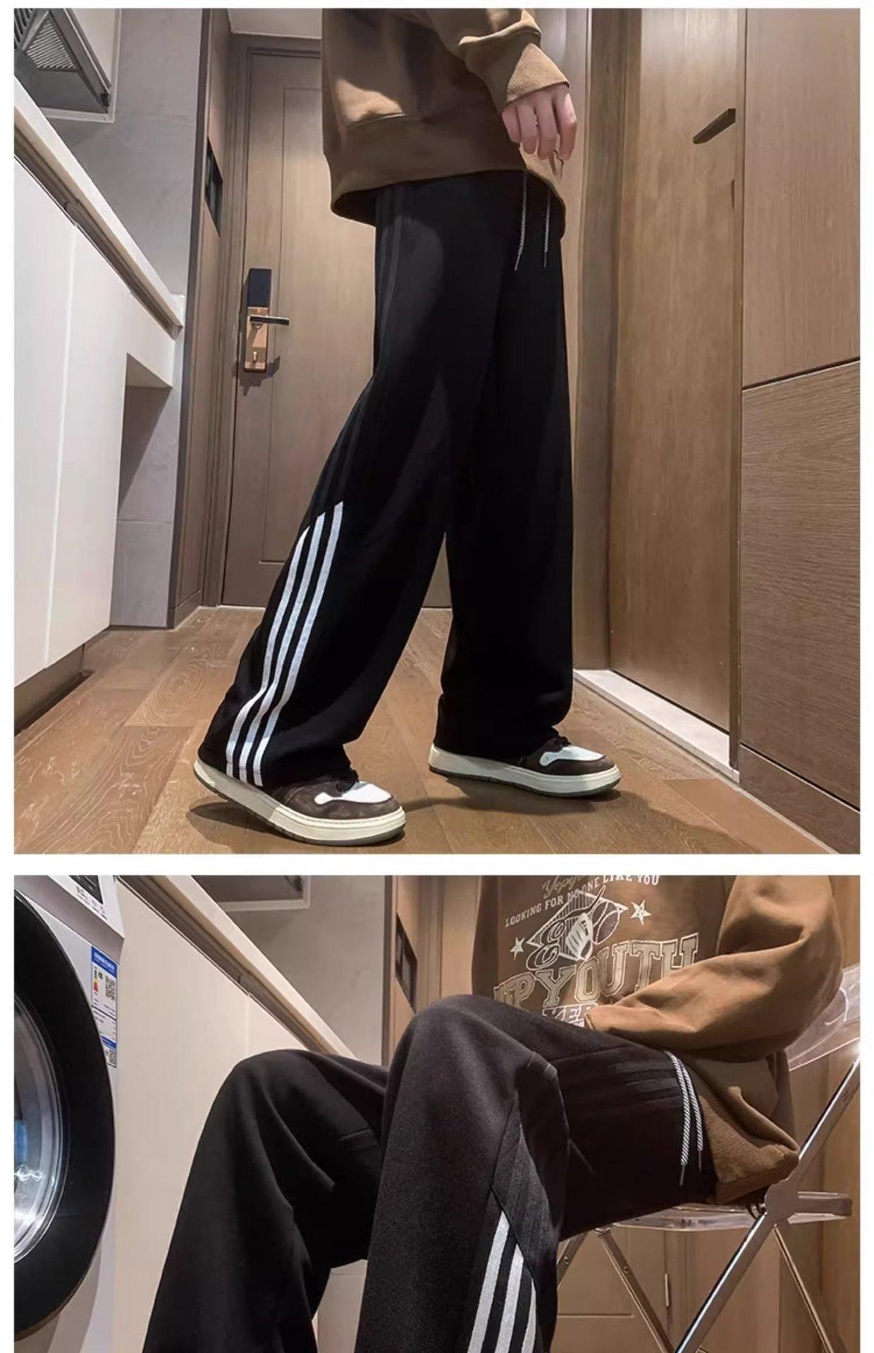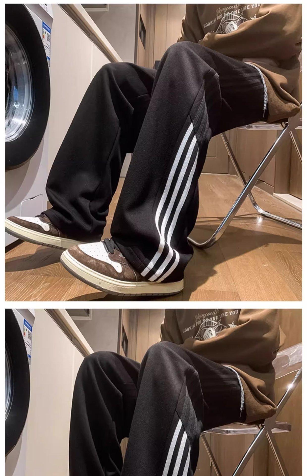Pantalones de chándal de rayas americanas para hombre, holgados, de marca de moda de primavera y otoño, pantalones deportivos rectos y holgados, pantalones casuales de moda