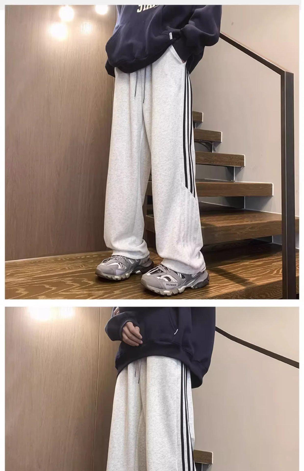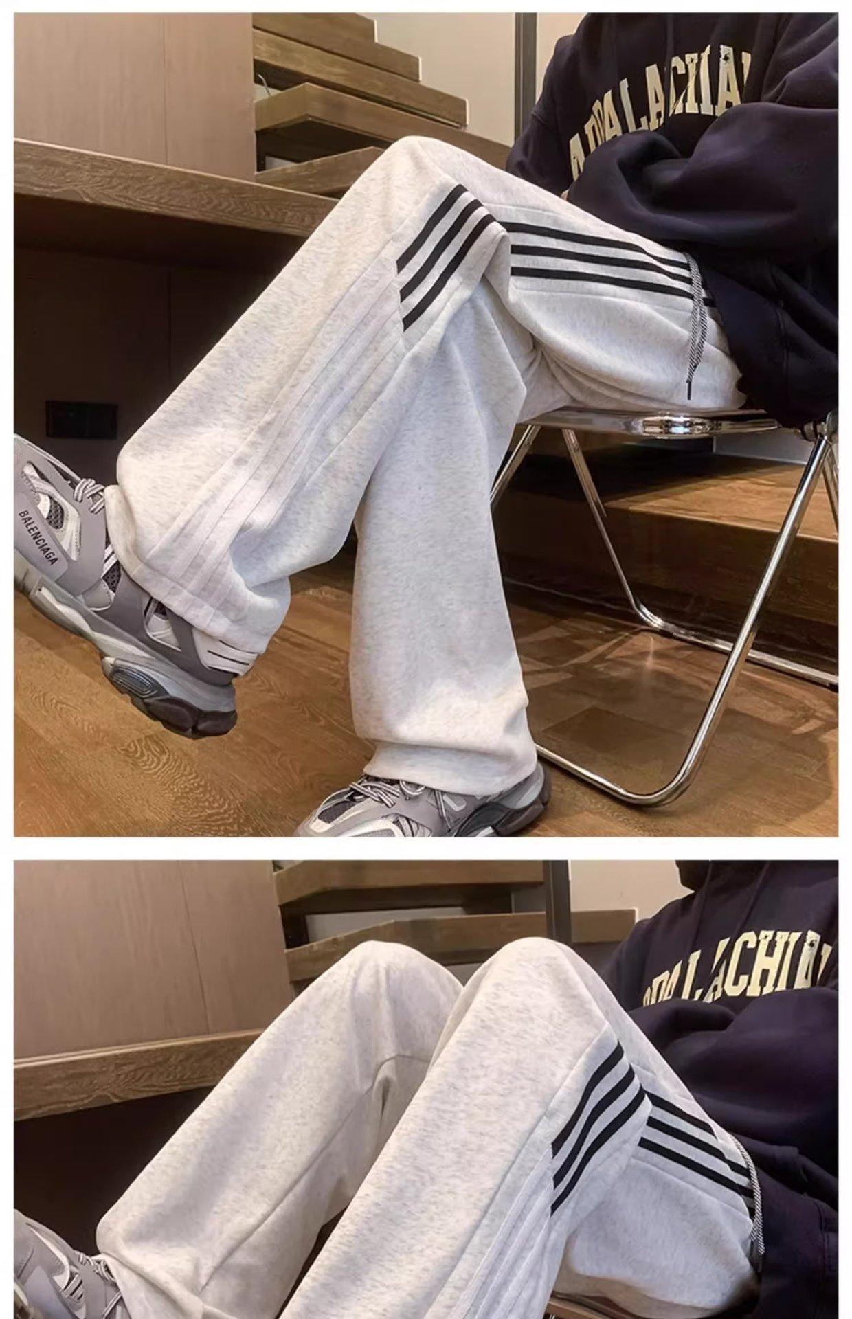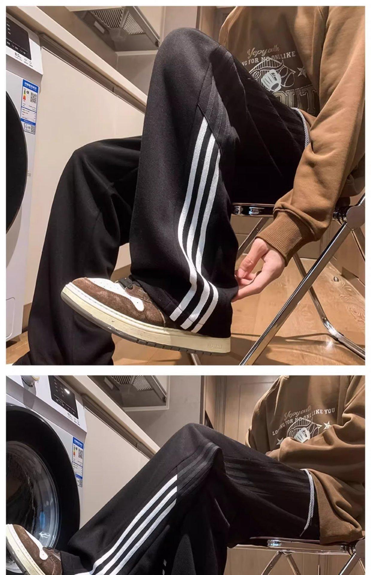 Pantalones de chándal de rayas americanas para hombre, holgados, de marca de moda de primavera y otoño, pantalones deportivos rectos y holgados, pantalones casuales de moda